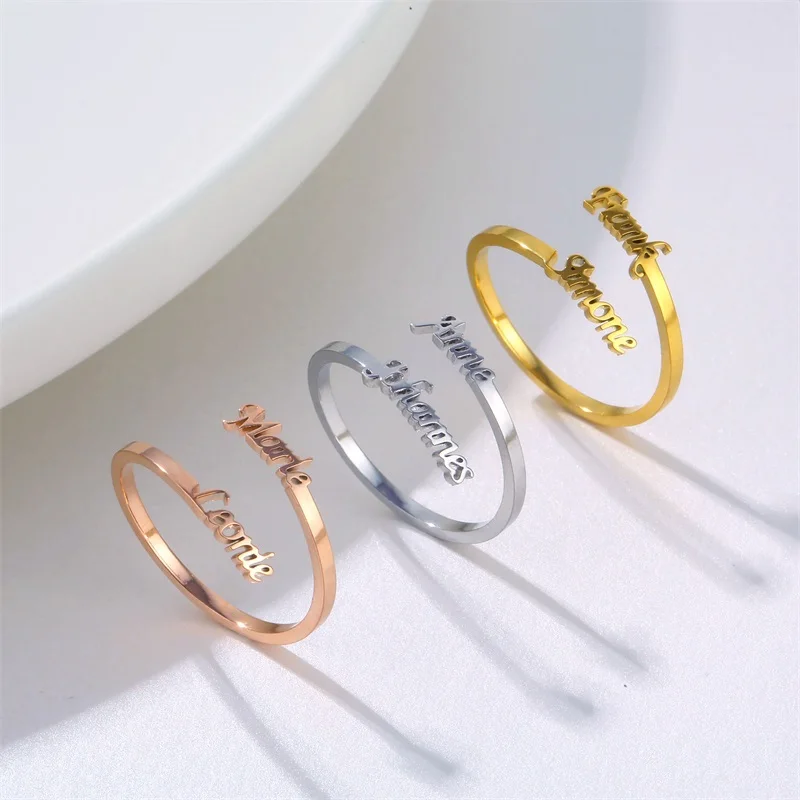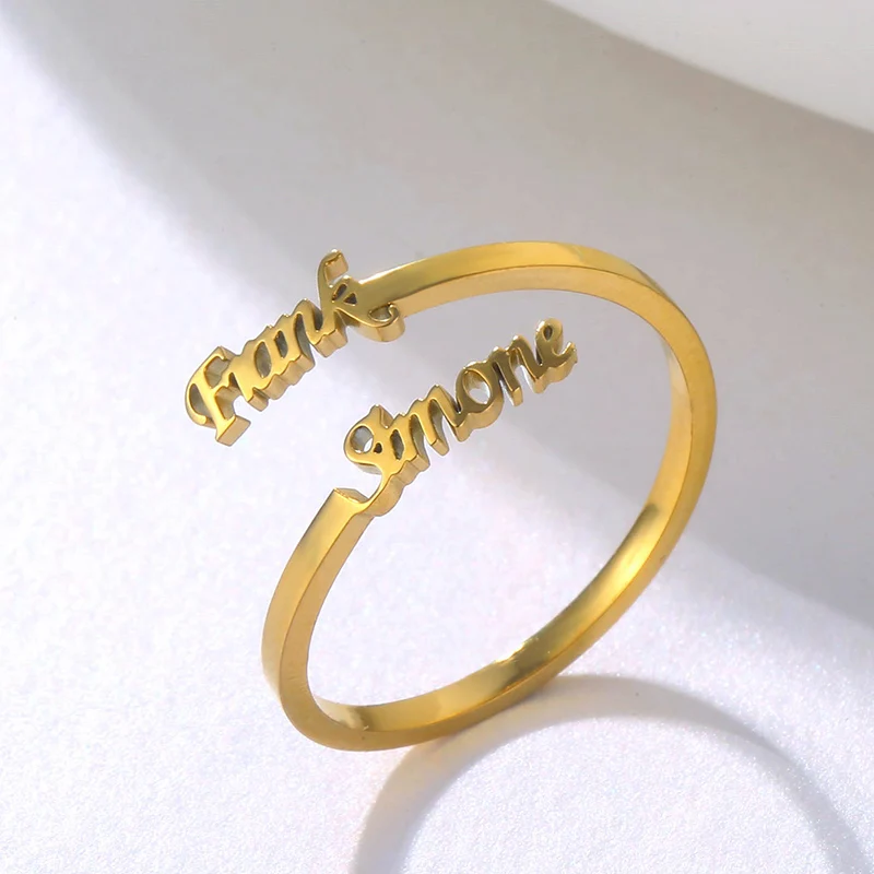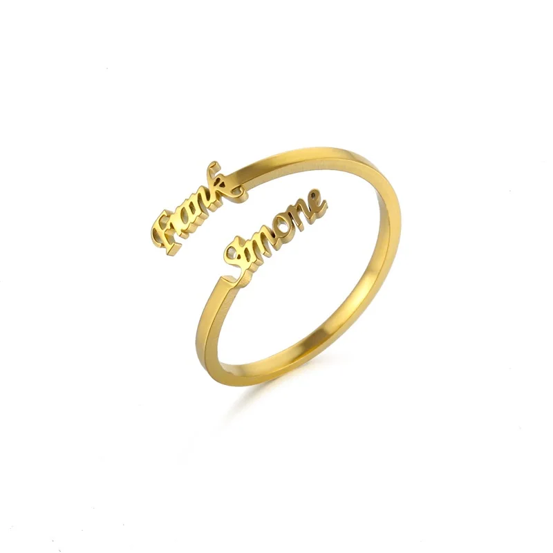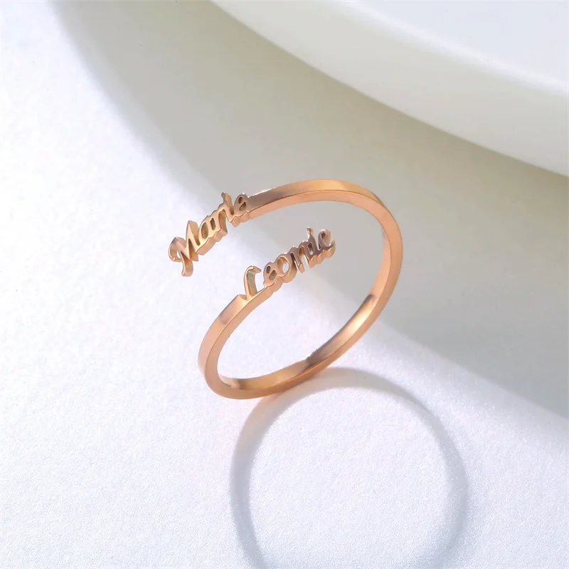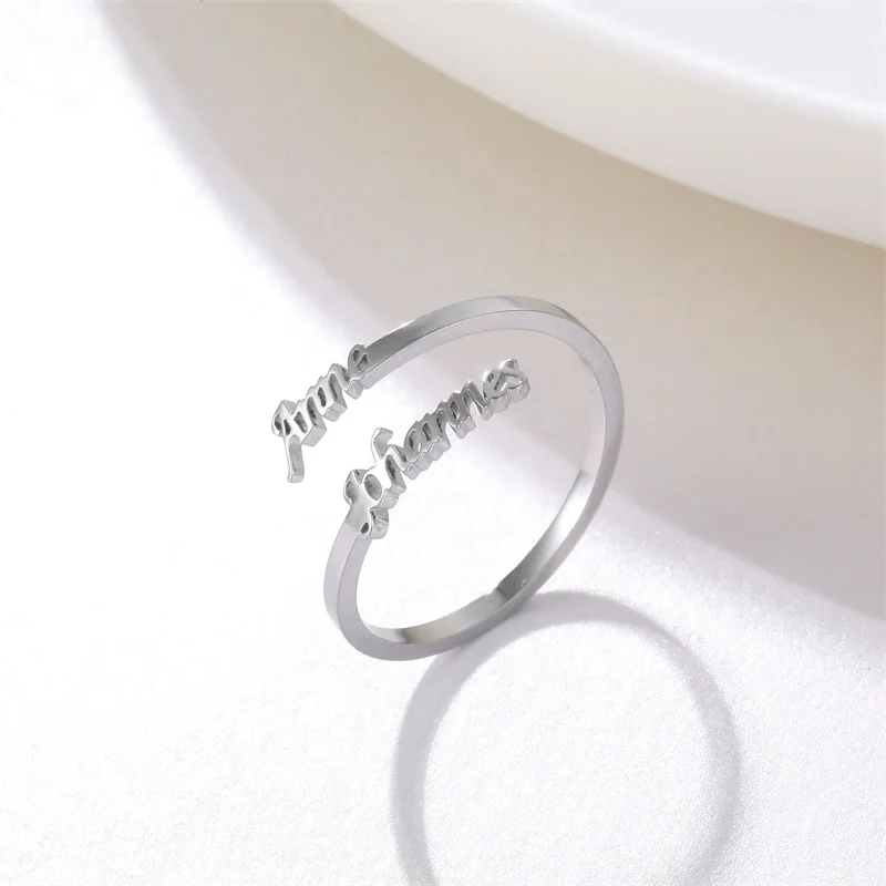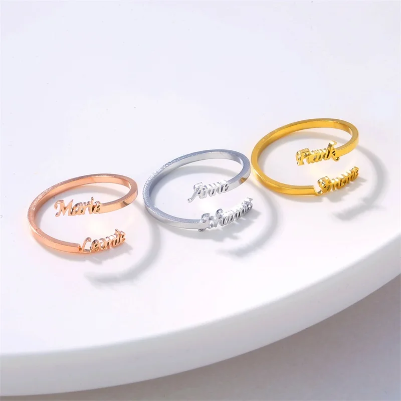 Кольца с двойным именем на заказ, регулируемые из нержавеющей стали, индивидуальная табличка, обручальное кольцо, ювелирные изделия, подарок для женщин