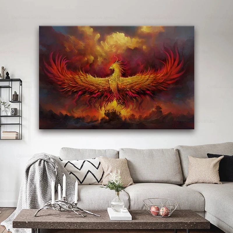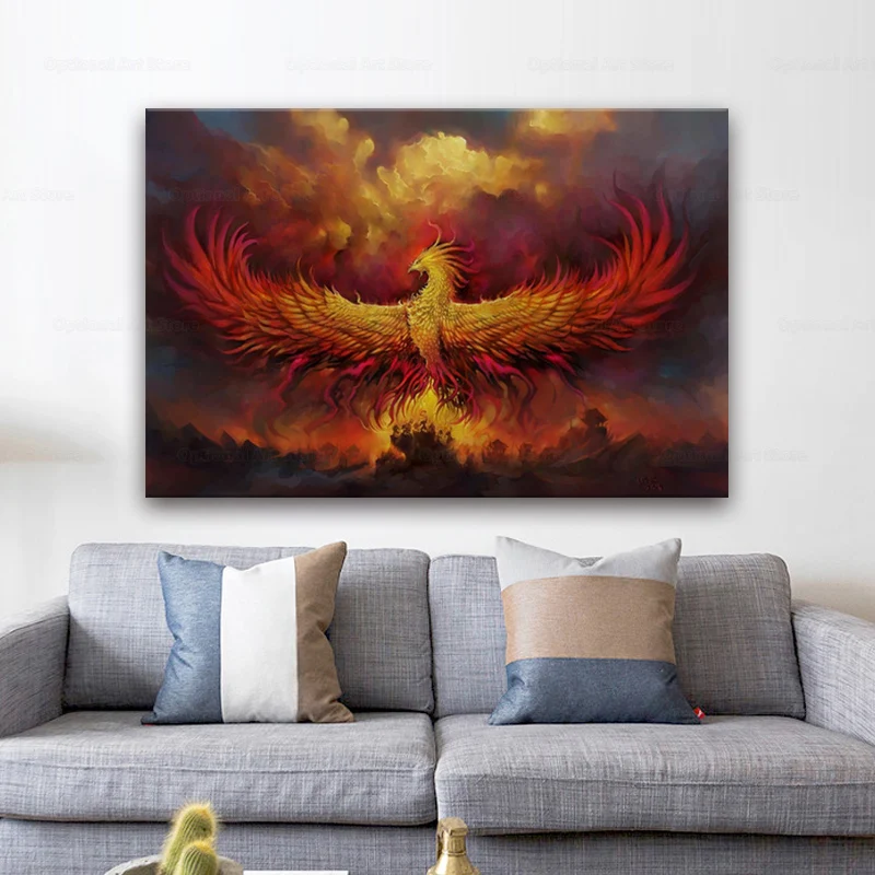 Золотые принты Феникса на холсте Современный домашний декор абстрактное животное настенное искусство без рамки постер картина для интерьера