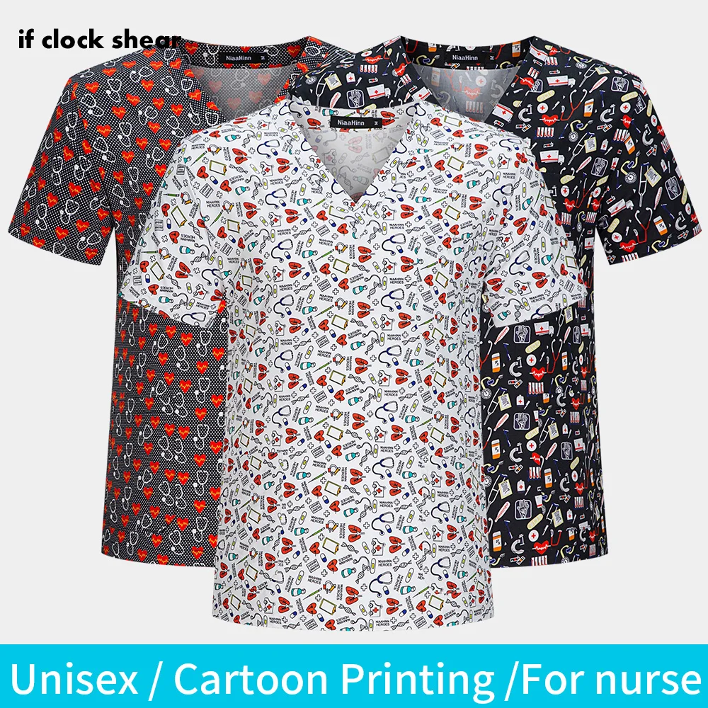 Scrubs tops Cute Cartoon printing Kindergarten teacher workwear pet...