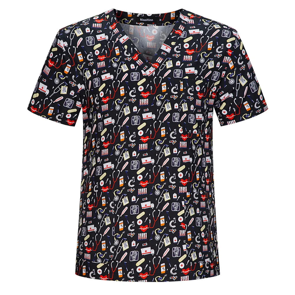 Топы с V-образным вырезом для медсестер, женские скрабы, одежда с д...