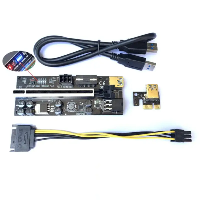 Светодиодный Riser 009C Plus PCI-E PCIE Riser для видеокарты PCI Express, двойной 6-контактный адаптер Molex 6Pin SATA к USB 3,0, кабель X1 X16