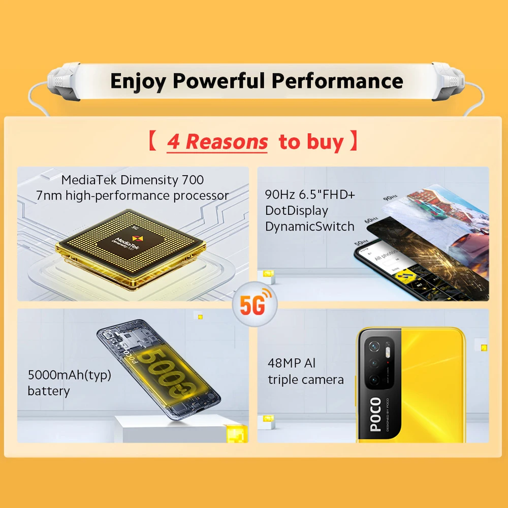 Глобальная версия Poco M3 Pro 5G NFC Dimensity 700 Octa Core 90 Гц 6,5 FHD+ Dotdisplay 5000mah 48MP Triple Camera
