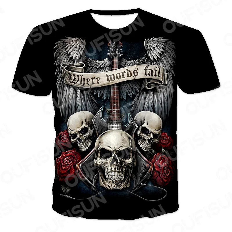 Мужская футболка с принтом черепа, в стиле панк-рок, винтажные футболки унисекс, топы, летняя повседневная мужская футболка оверсайз с круглым вырезом, XXS-6XL