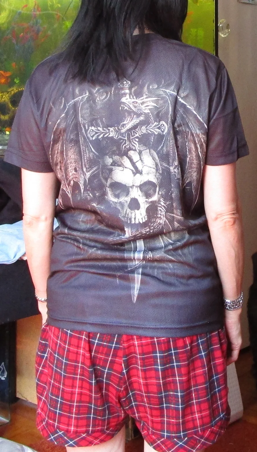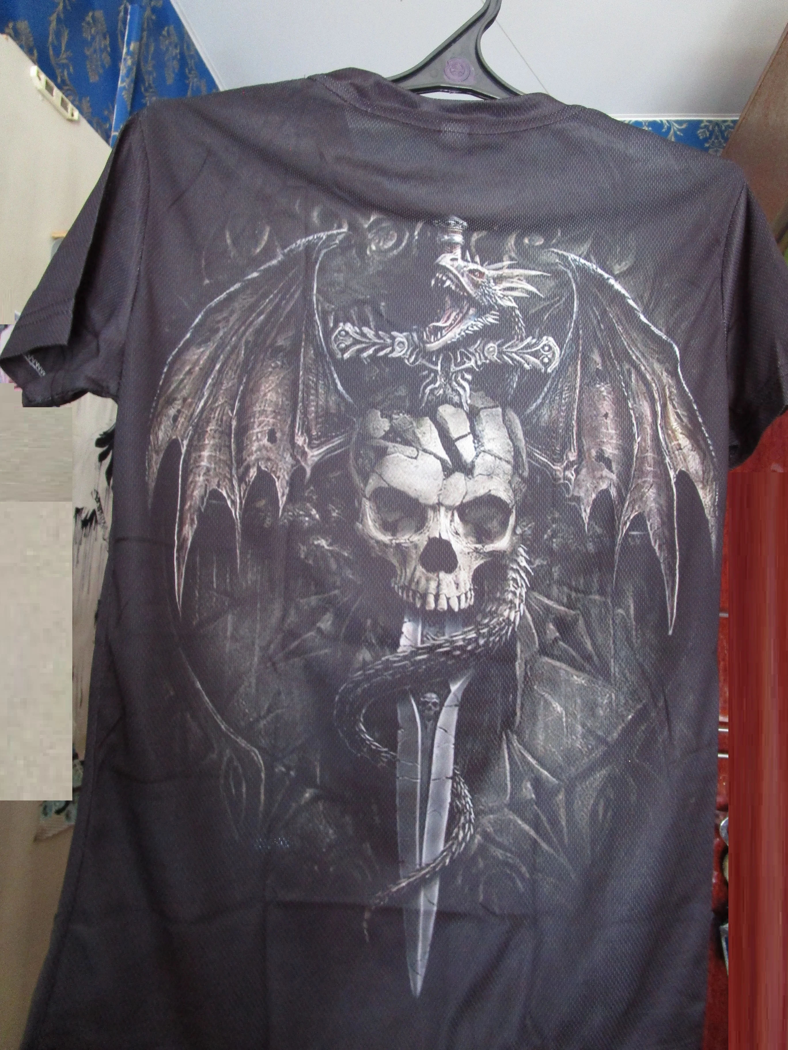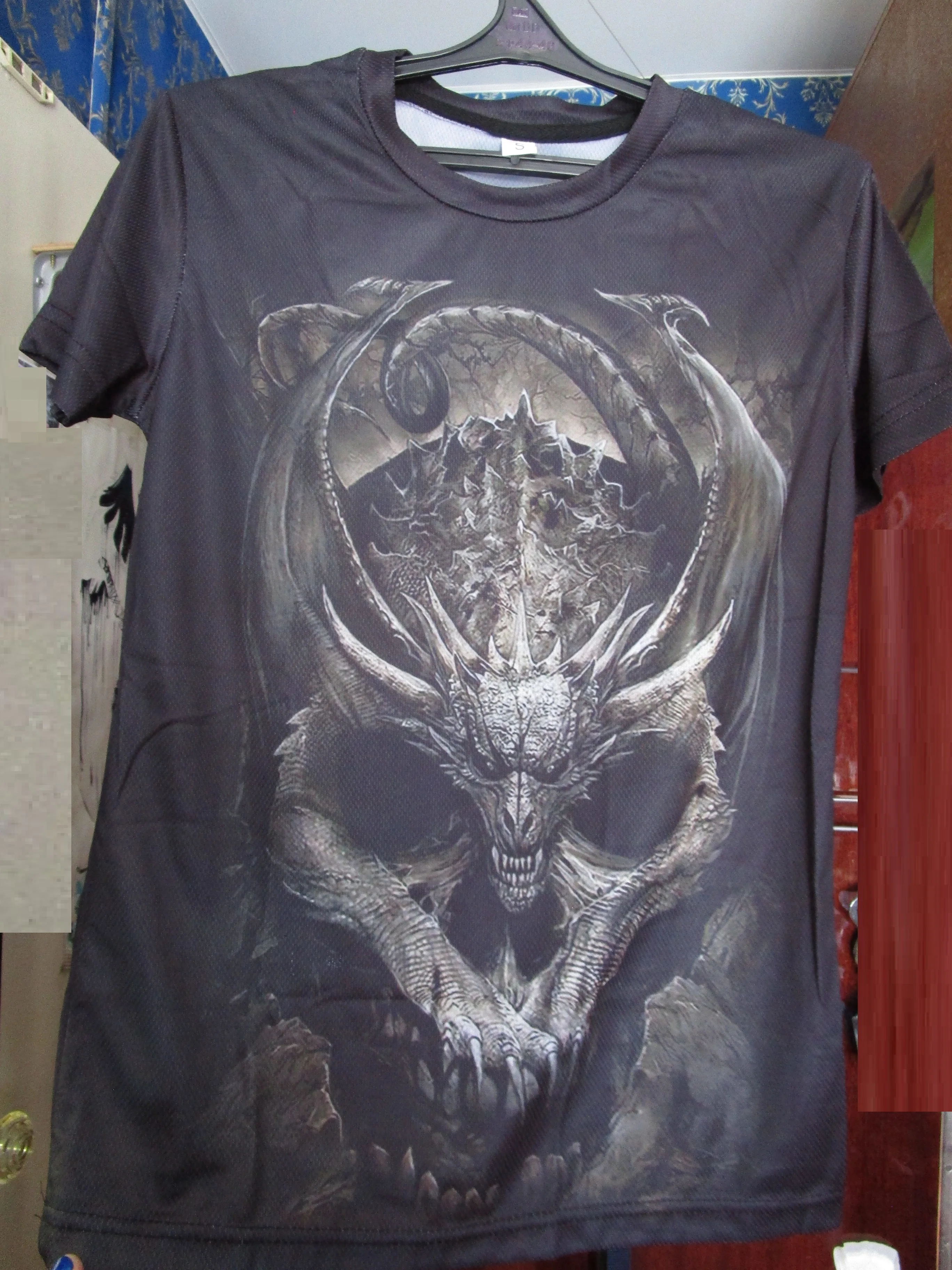 Футболка очень красивая! Шла чуть меньше месяца с другими заказами. Размер выбирала по размерной сетке магазина. Сама ношу российский 42-ой. Футболка села идеально. Только ткань - одна синтетика, как-бы в сеточку, слегка прозрачная, но на теле не заметно. В общем, я довольна.
