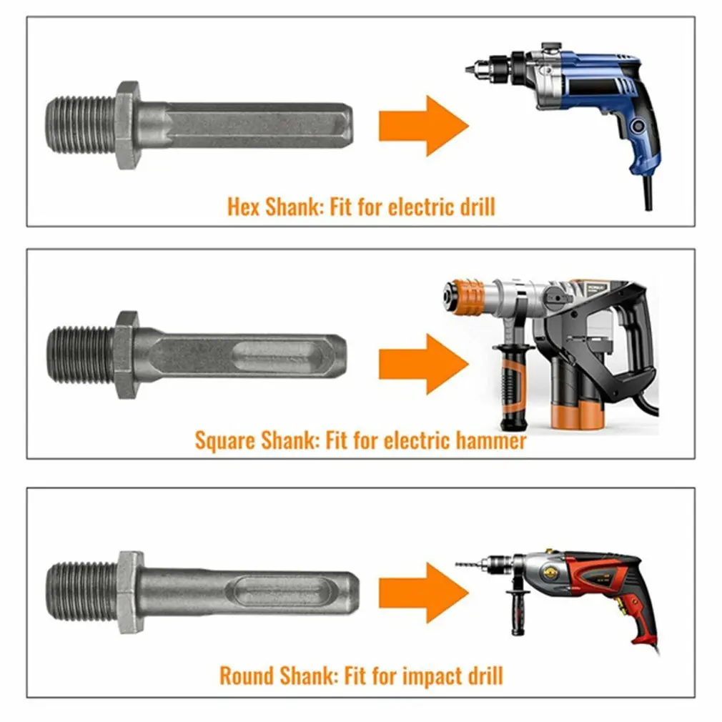 3 режима сверла, квадратный хвостовик; Круглый хвостовик; Шестигранный хвостовик. Различные режимы для удовлетворения ваших различных потребностей и используется для различных типов электрических дрелей.