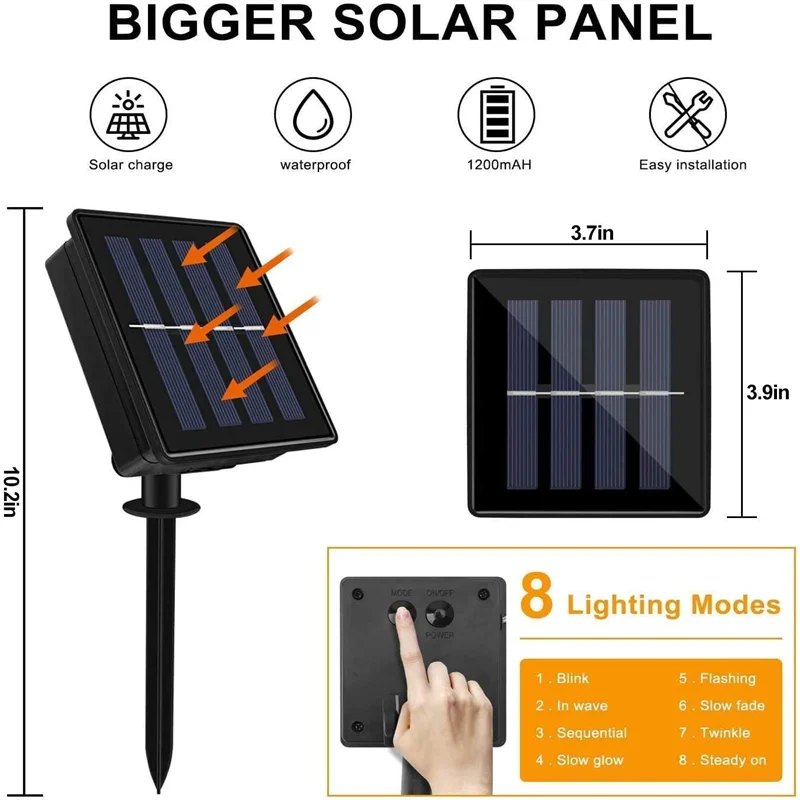 Гирлянда на солнечной батарее, водонепроницаемая, 200 светодисветодиодный, 8 режимов, для сада, свадьбы
