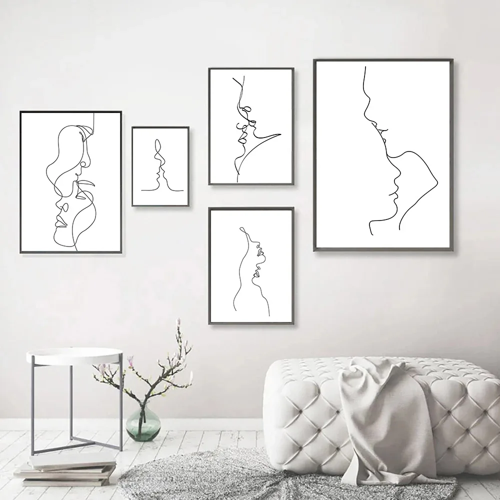 Абстрактный поцелуй для пары, постер для рисования, черно-белый хол...