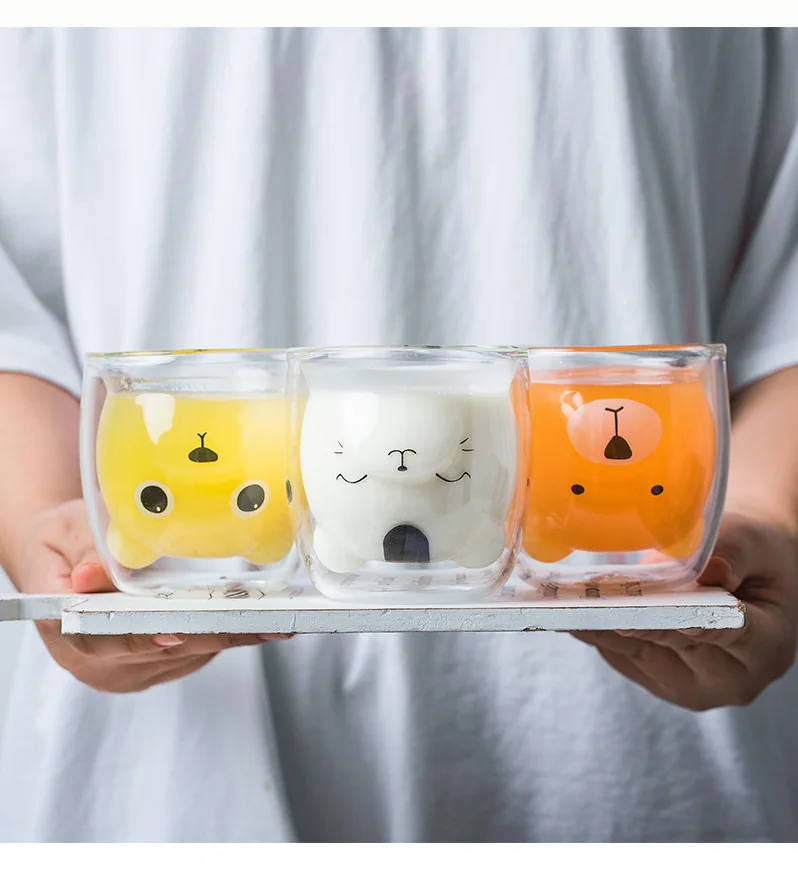 Стакан с двойными стенками в форме милого медведя, кружка для чая, завтрака, молока чашка для лимонного сока, посуда для напитков, Детская кружка для влюбленных, подарок