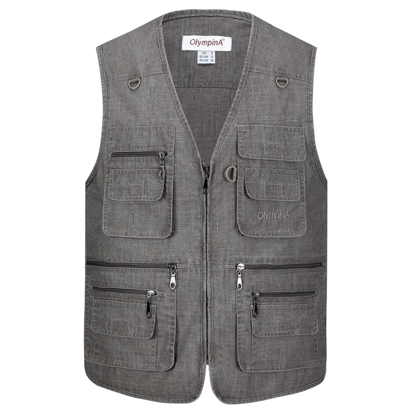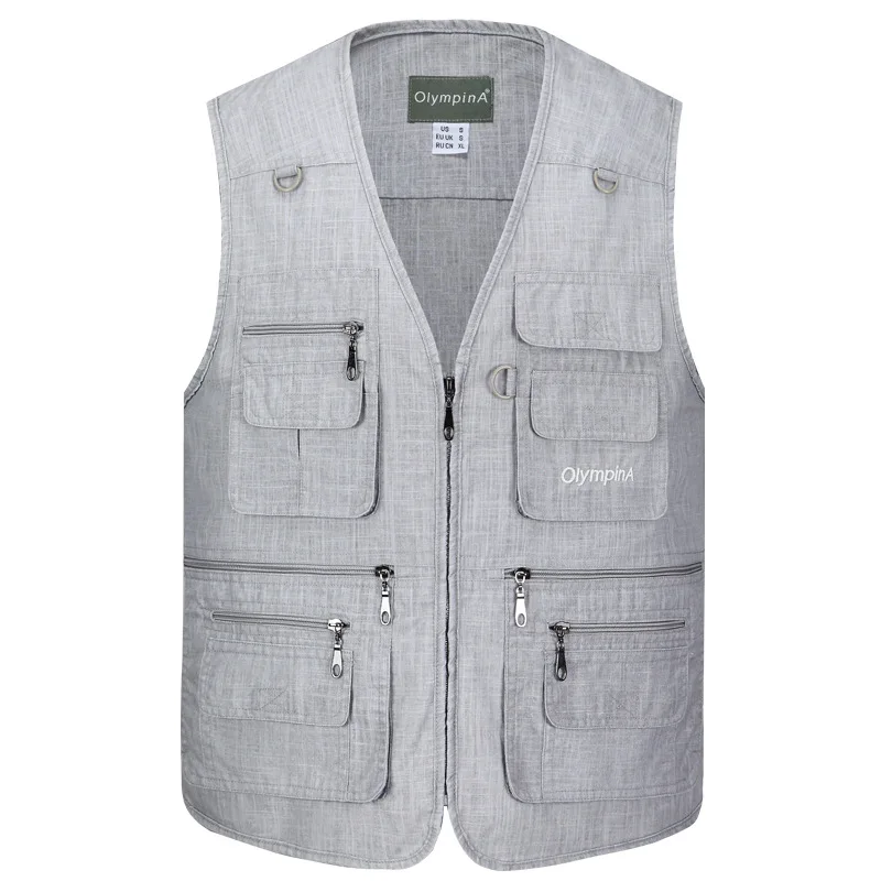 Классический мужской жилет с карманами, осенний мужской повседневный жилет без рукавов для фотографа, тонкий жилет, Быстросохнущий жилет
