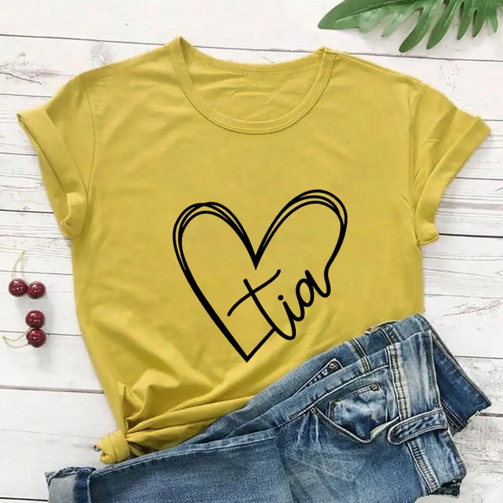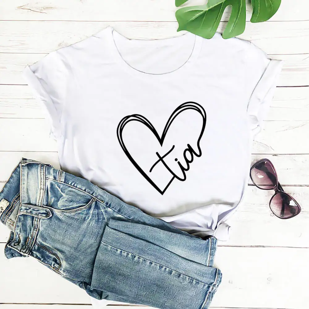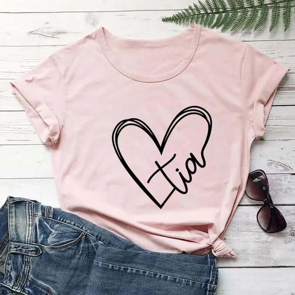 Tia, принт с сердцем, футболка в испанском стиле Auntlife забавная летняя 100% хлопчатобумажная Женская футболка подарок для сестры тетей подарок футболка Лучшие тетушки когда-либо рубашки для мальчиков
