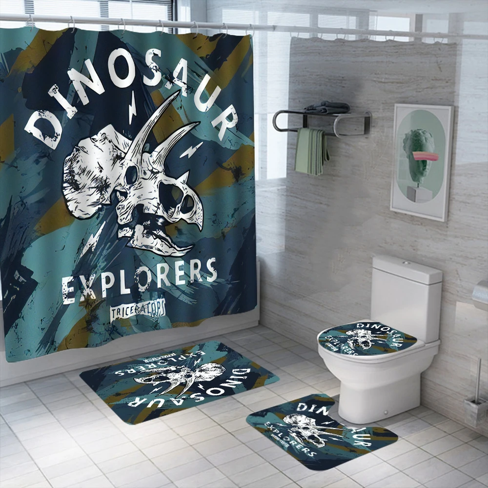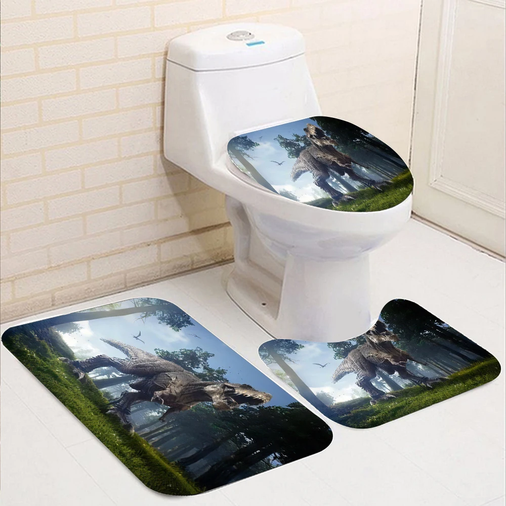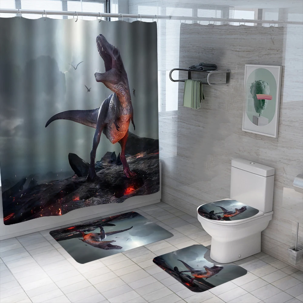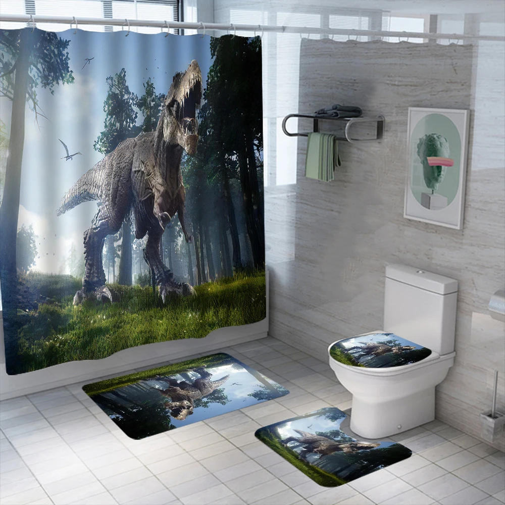 Комплект занавески для душа с 3D динозавром Юрского периода, водонепроницаемые моющиеся занавески для ванной из полиэстера, Противоскользящие коврики, крышка для туалета, набор ковриков для ванной