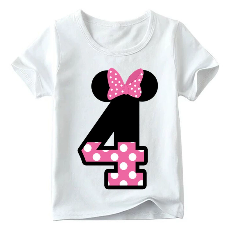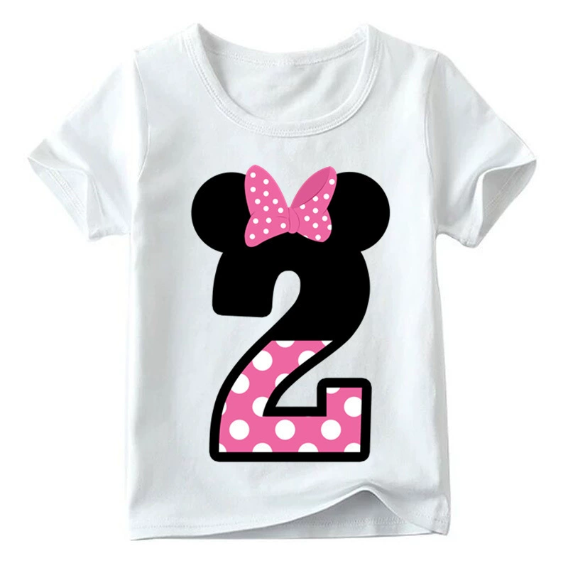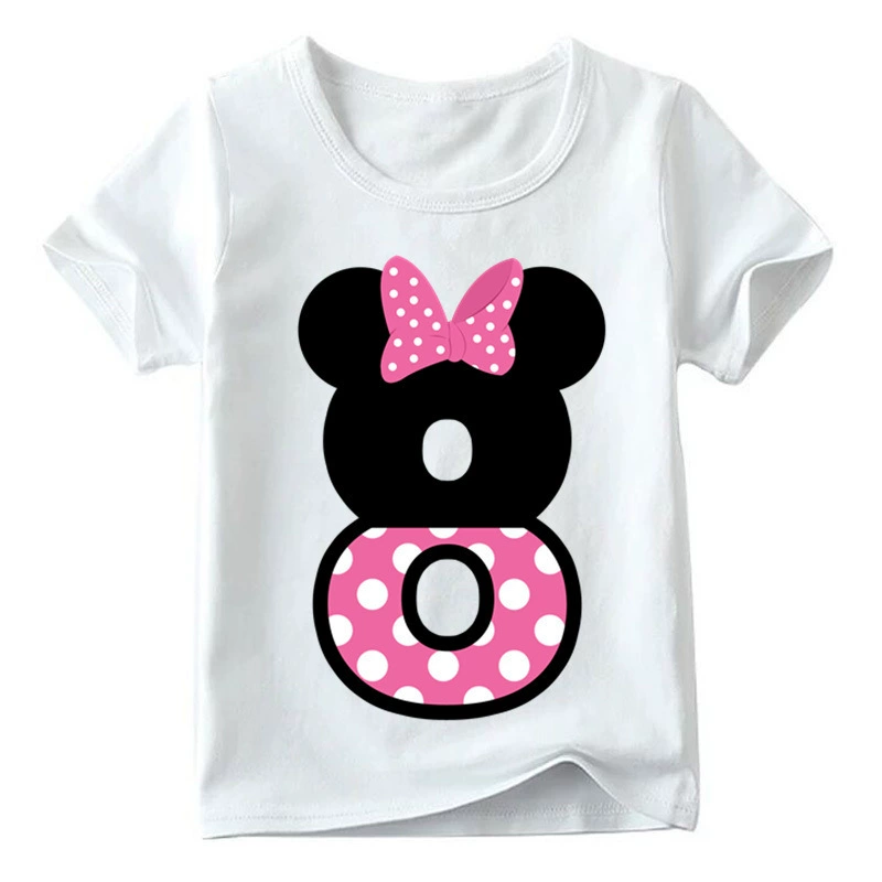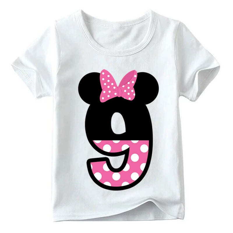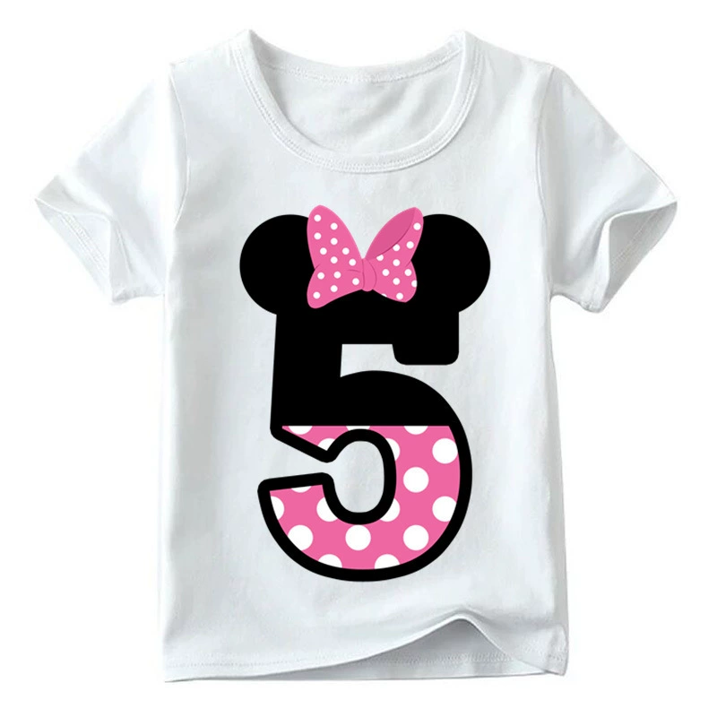 Футболка для девочек Минни Маус, стильная рубашка с принтом в виде цифр на день рождения, повседневные летние костюмы для детей, подростков