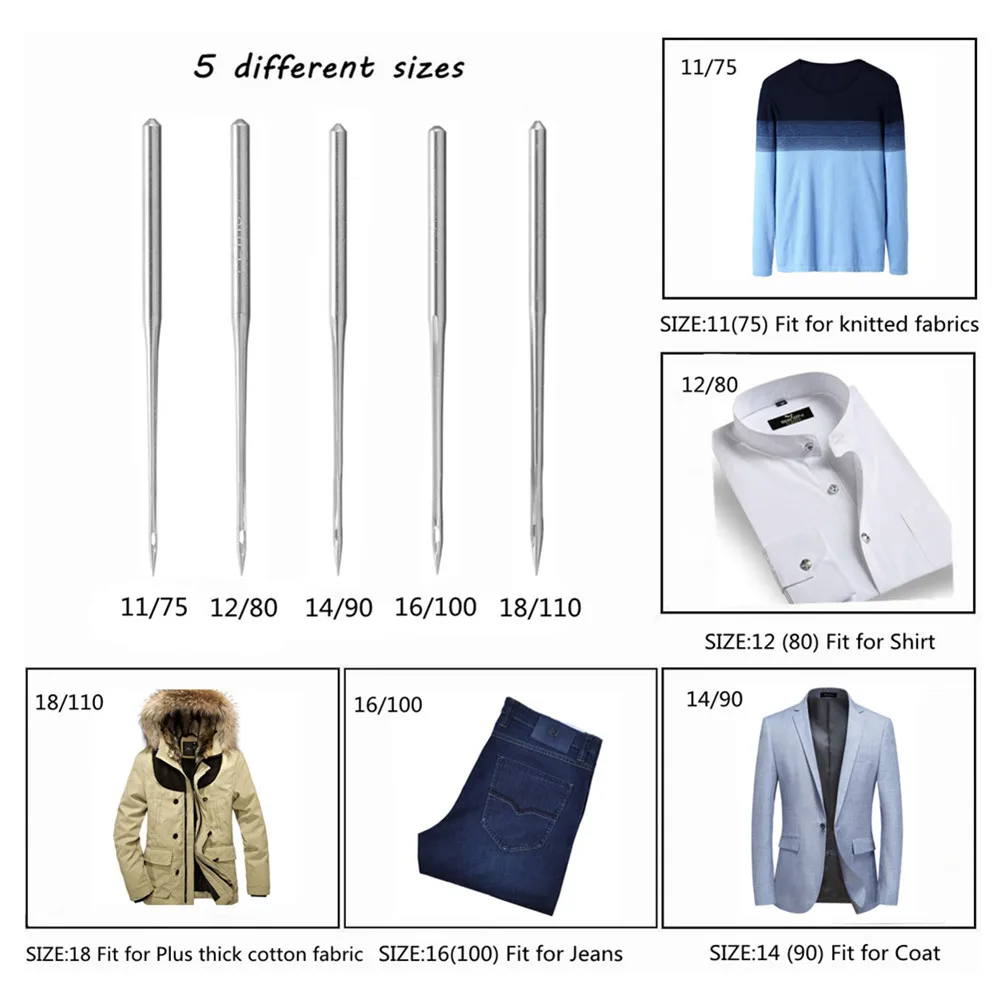 Набор игл для бытовых швейных машин, упаковка 11, 12, 14, 16, 18, для швейных машин старого типа Janome Brother, 10 шт.
