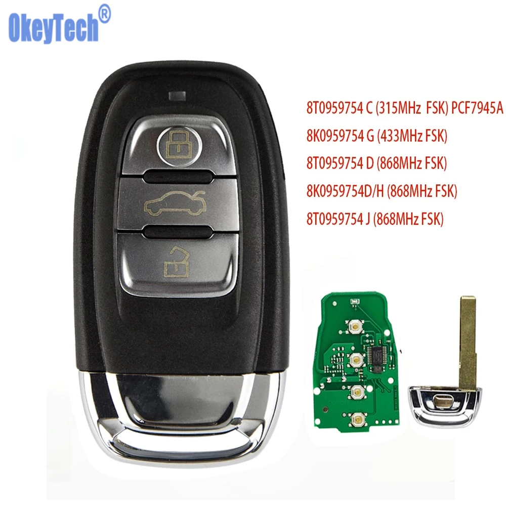 Ключ дистанционного управления OkeyTech, 315 МГц433 МГц868 МГц, 3 кнопки, для Audi A4 A5 Q5 A4L 2008-2016 8T0959754DJ 8K0959754DH