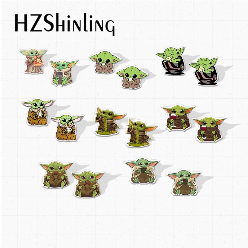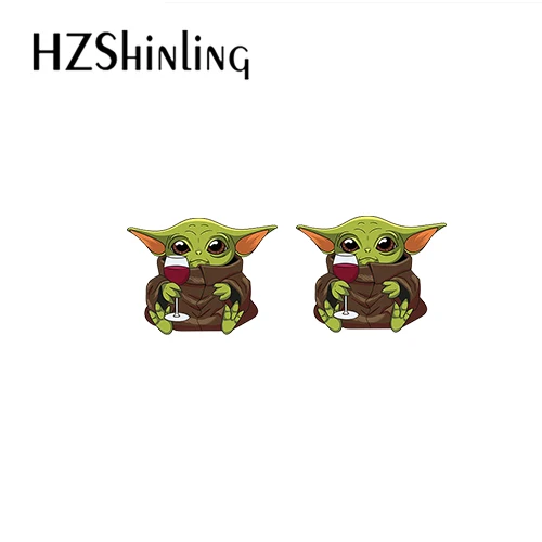 2021 Новое поступление милые космические инопланетяне младенец йода любит вино пицца эпоксидные акриловые серьги ручной работы серьги-гвоздики с эпоксидной смолой
