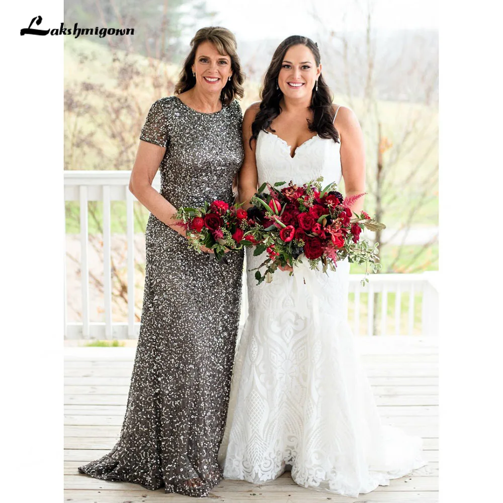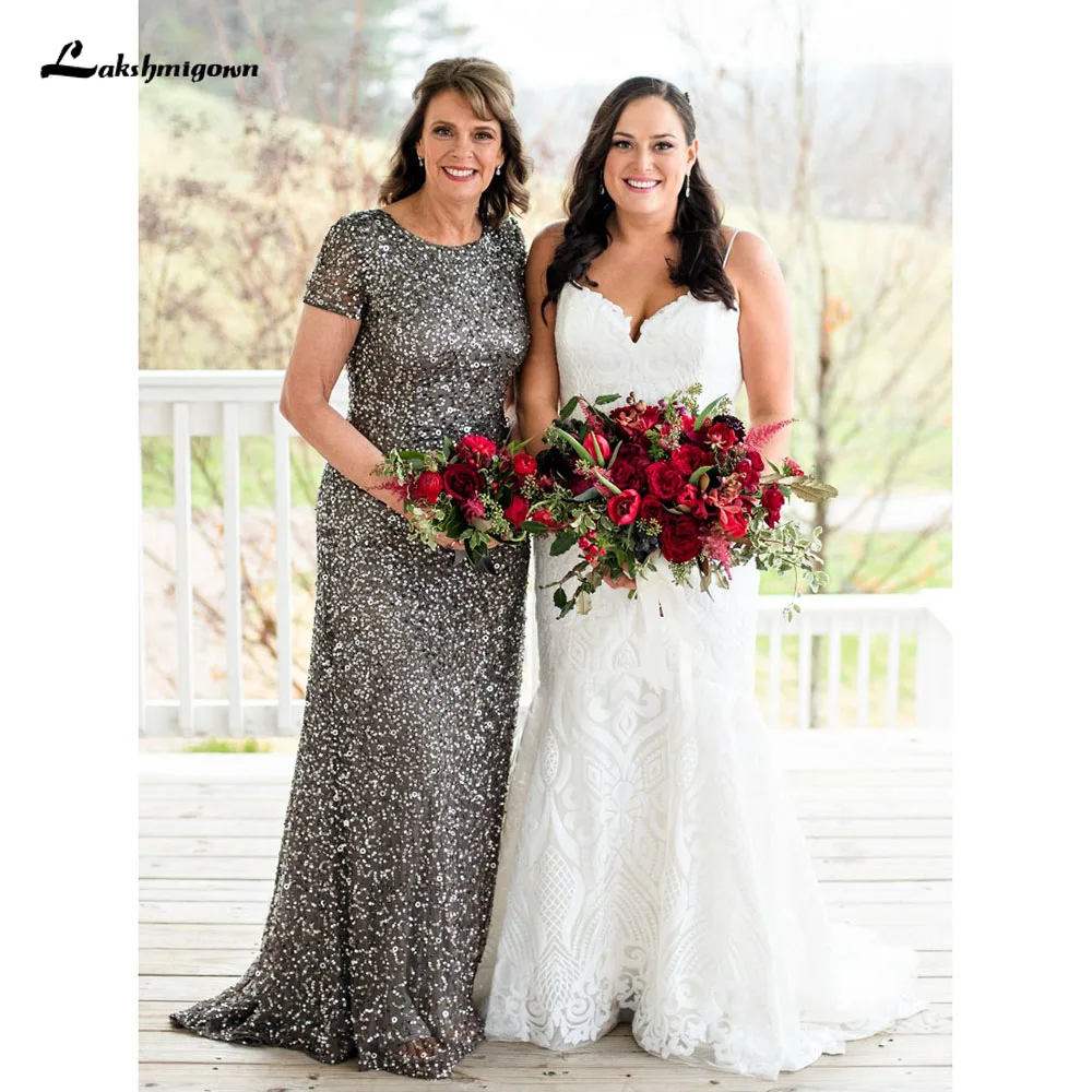 Женское кружевное платье-Русалка Lakshmigown, элегантное платье с круглым вырезом и коротким рукавом для матери невесты, украшенное блестками, 2021