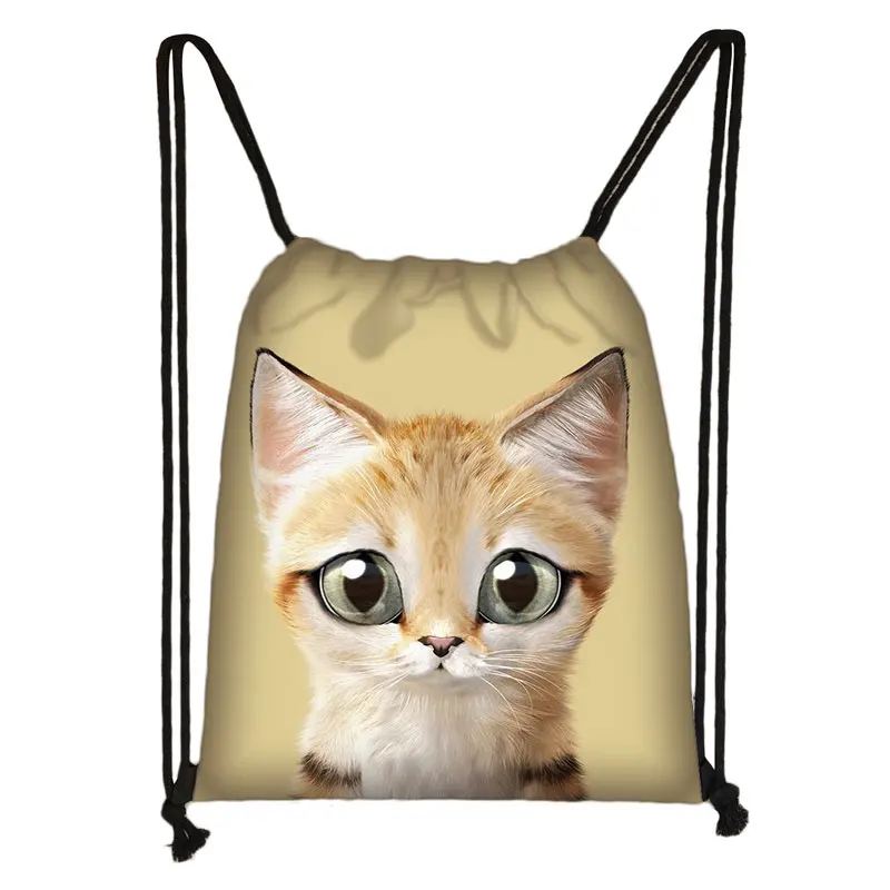 Сумка на шнурке с милой головой кота, мультяшная живопись, 3D печать, портативные сумки для покупок для девушек, обувь, женский рюкзак для путешествий в спортзале