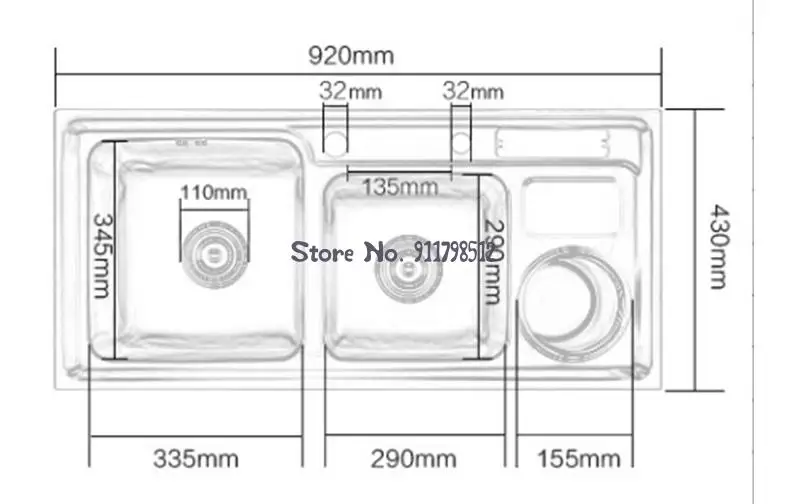 Кухонная раковина из нержавеющей стали, 92 х43 см, 3 котелка, держа...
