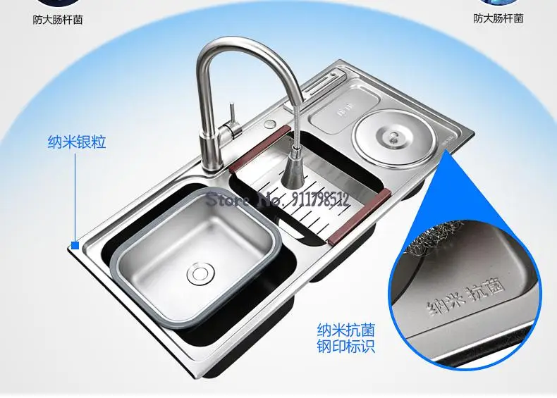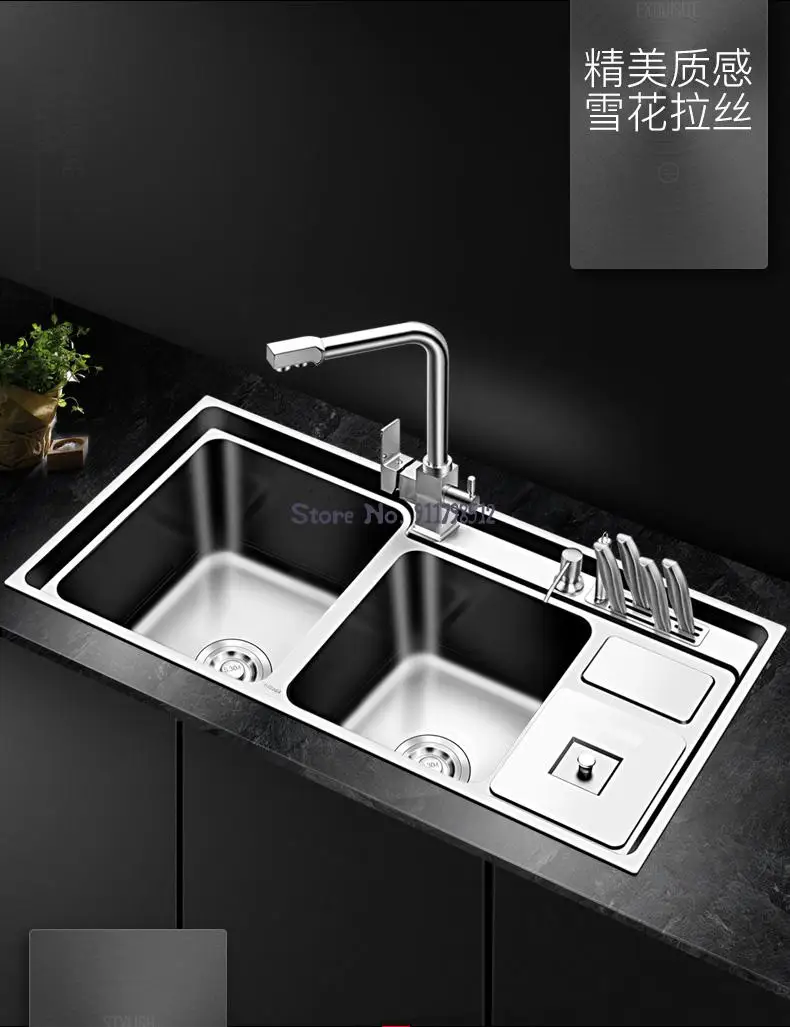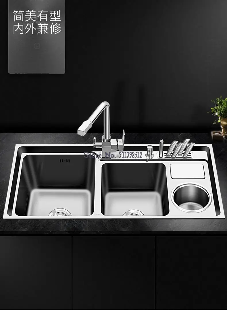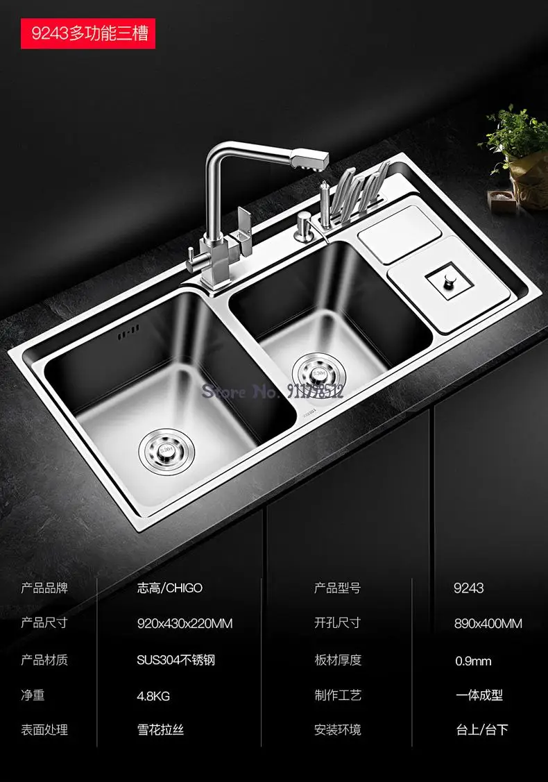 304 нержавеющая сталь нано Бытовая кухонная раковина двойной лоток три лотка с мусорным баком держатель для ножа набор для раковины для овощей