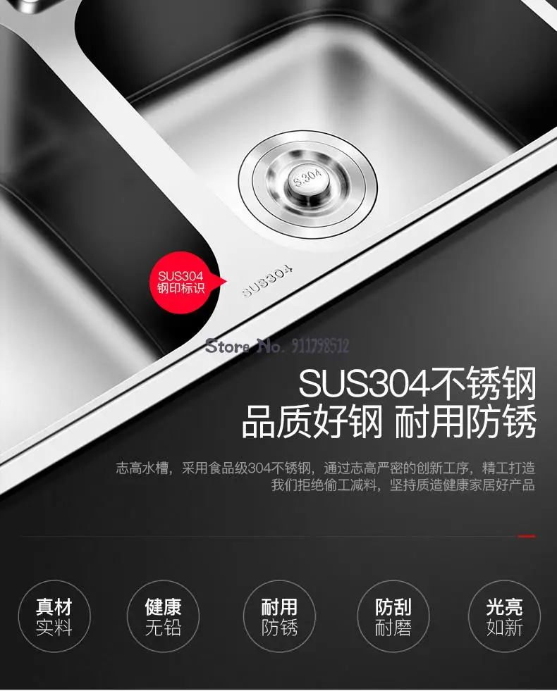 304 кухонная раковина из нержавеющей стали Двойная ванна утолщенная...