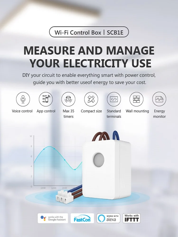 Модуль Broadlink Bestcon SCB1E Smart Wifi, 16 А, измерительный переключатель, блок управления Wi-Fi, работающий с Alexa Google