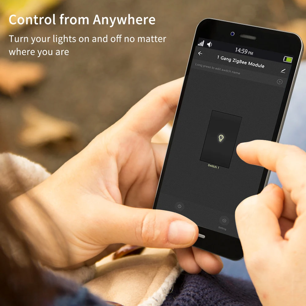 Модуль работает с настенным ручным переключателем, поэтому после установки модуля в блок переключателя оригинальный механический переключатель все еще работает.Дистанционное управление через приложение, голосовое управление, настенный выключатель работает.