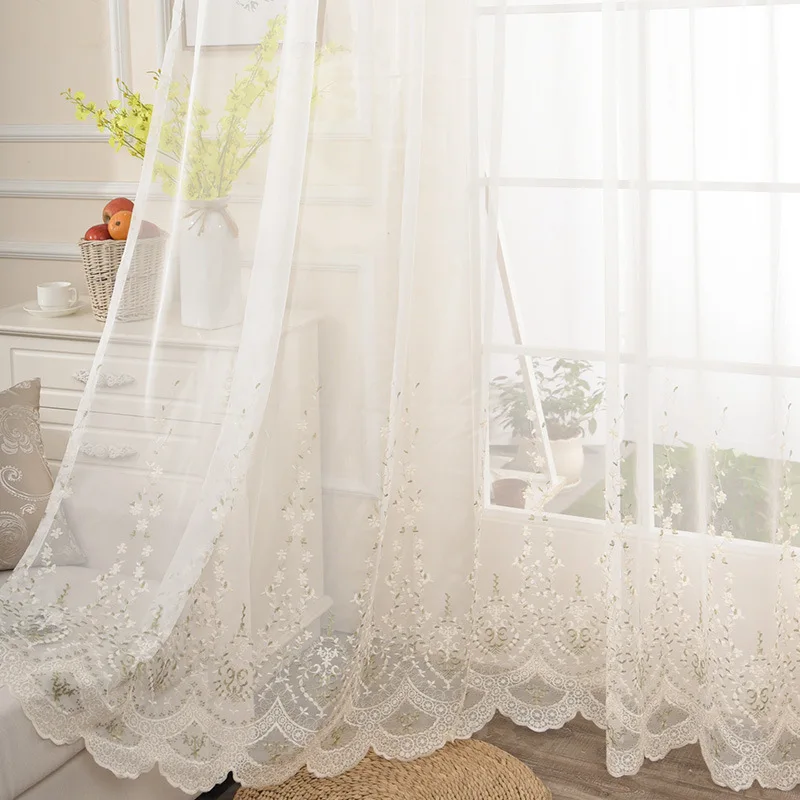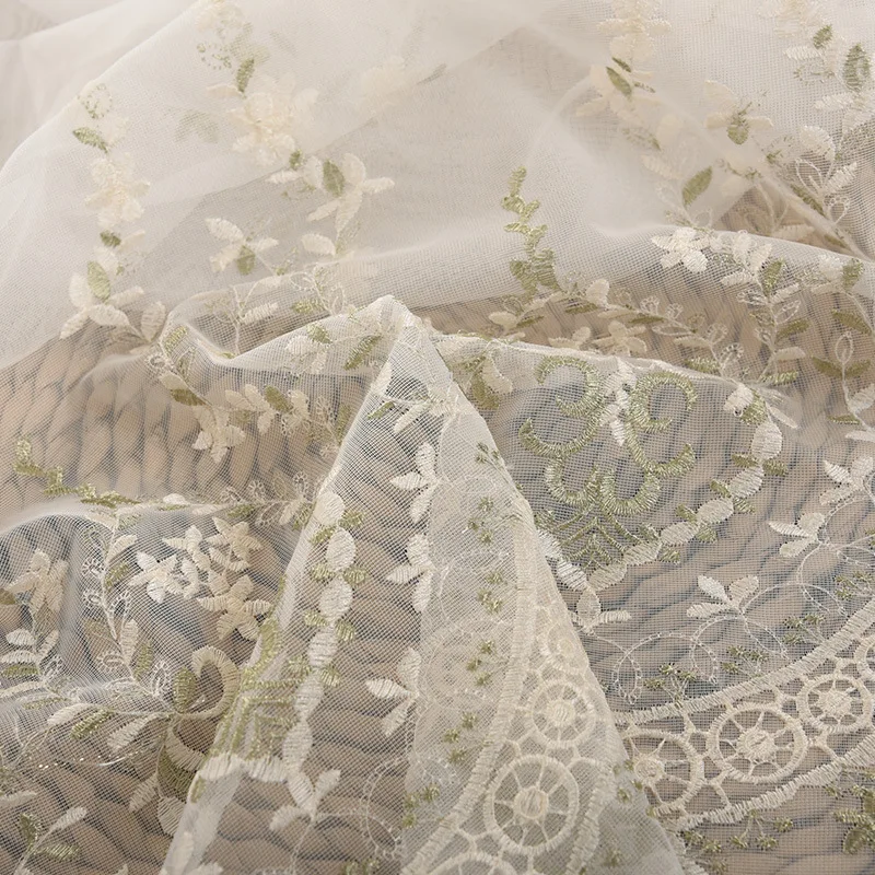 Вышитые сплошные шторы для гостиной, тюлевые занавески с зелеными листьями, кружевные Оконные Занавески