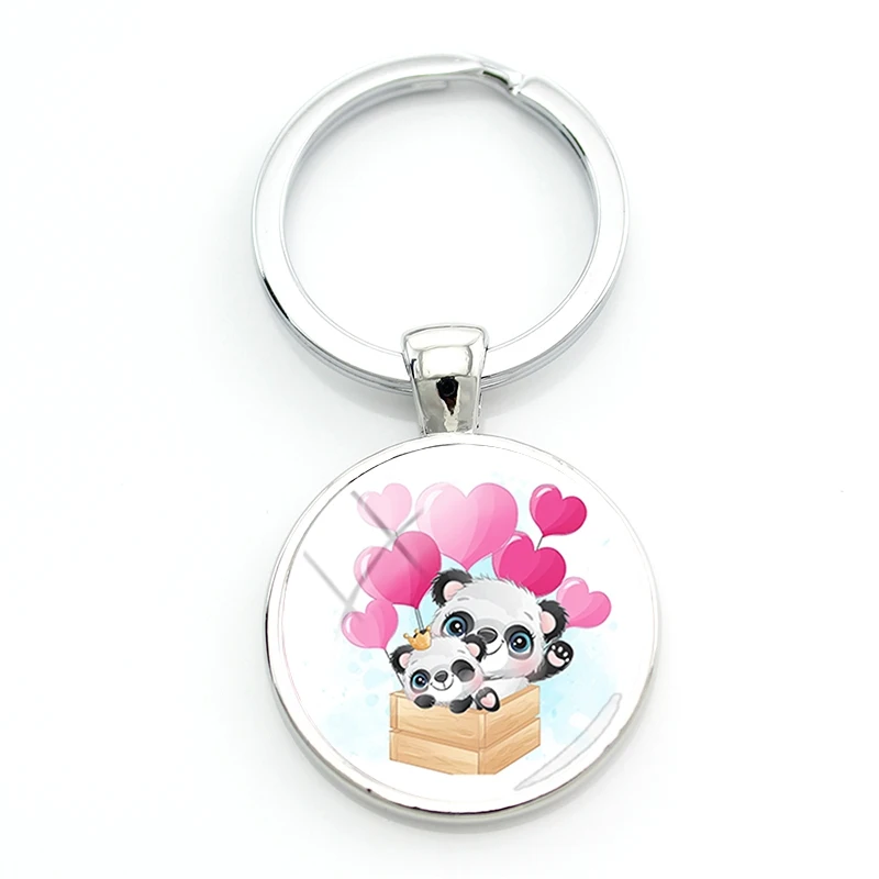 Брелок для ключей TAFREE с изображением милой панды, брелки с изображением животных из мультфильмов, для мальчиков и девочек, стеклянный купол, классические ювелирные изделия