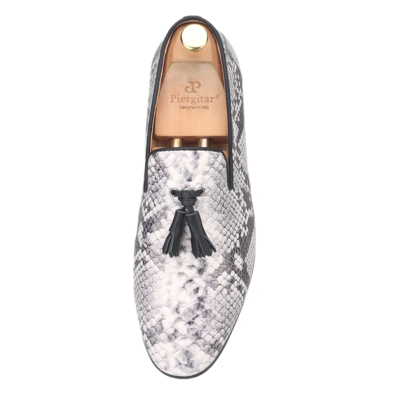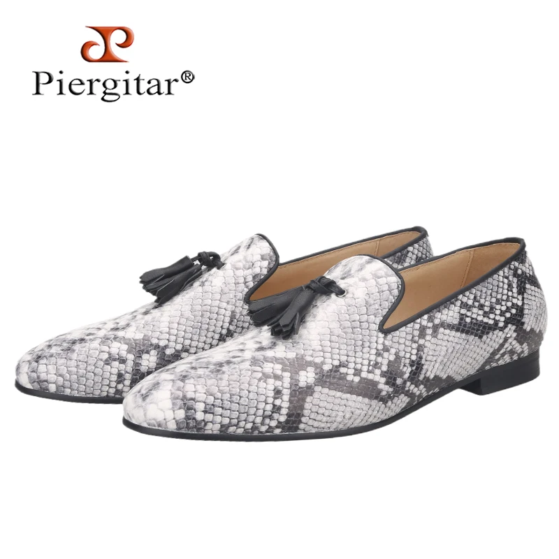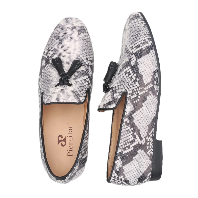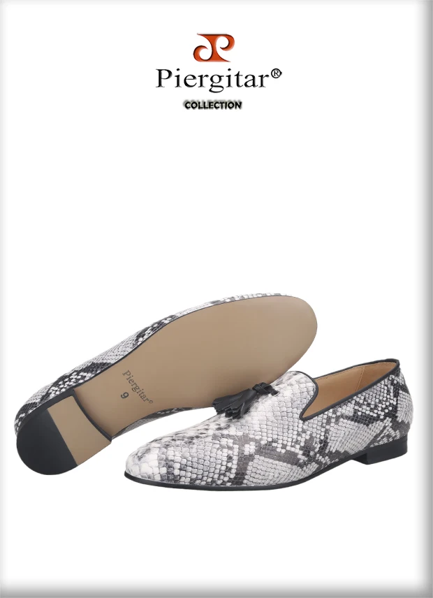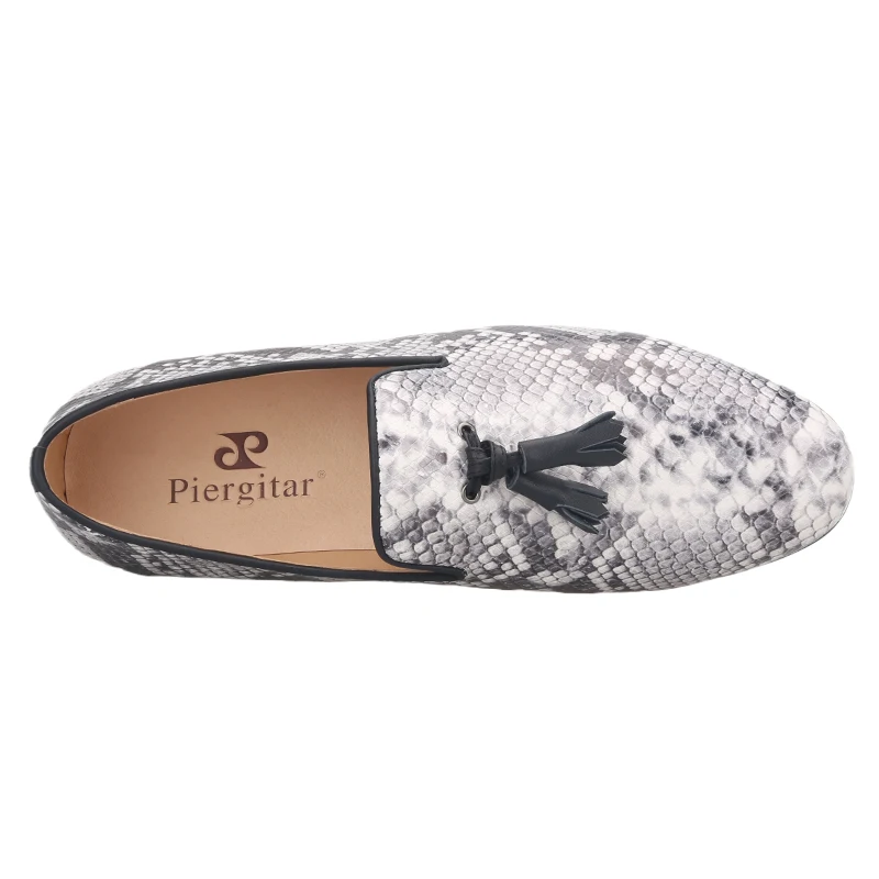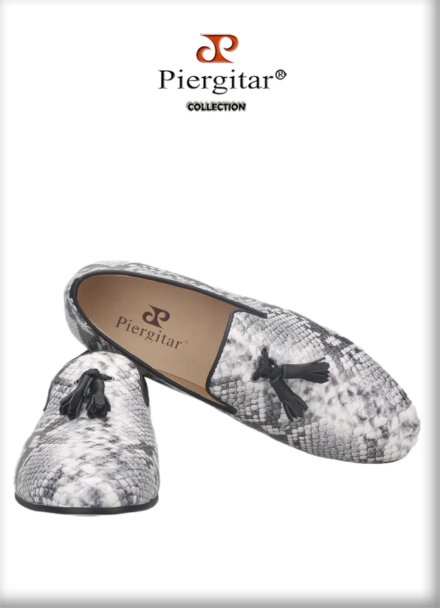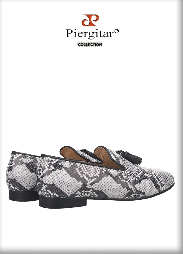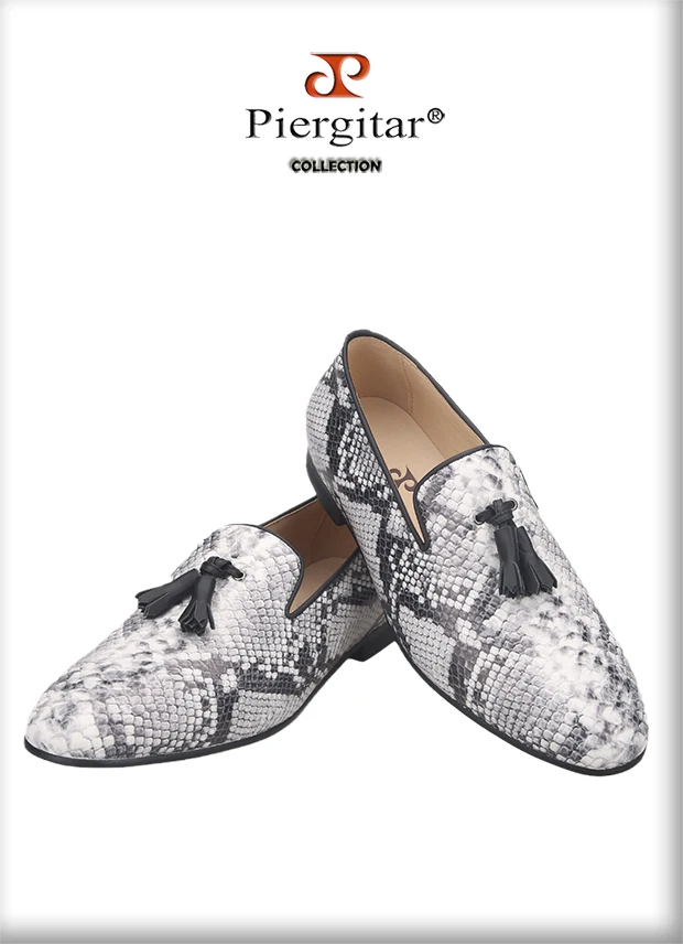 PiergitarНовый Стиль Серый; Выделка под змею; Кожаные мужские лоферы ручной работы; Женская обувь на молнии, узор с орнаментом широкий ассортимент обуви: мокасины размера плюс Мужской тапочки под смокинг