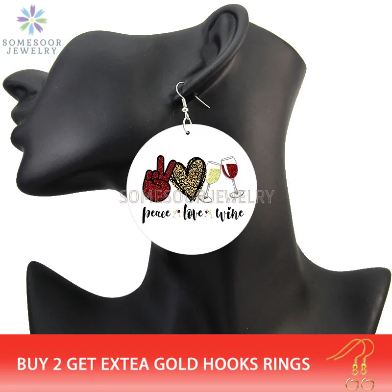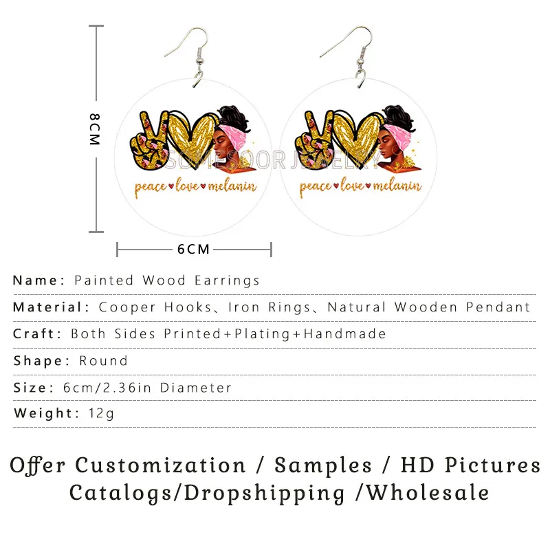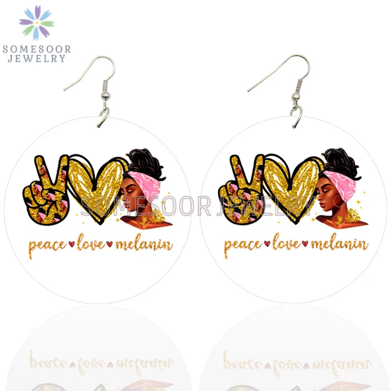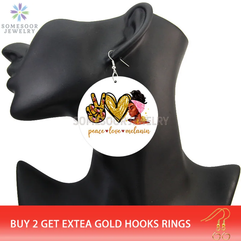 SOMESOOR Peace Love Melanin, повязка на голову для девушек, деревянные висячие серьги с обеих сторон, с принтом, ручная работа, петли для ушей, висячие украшения для женщин, подарки