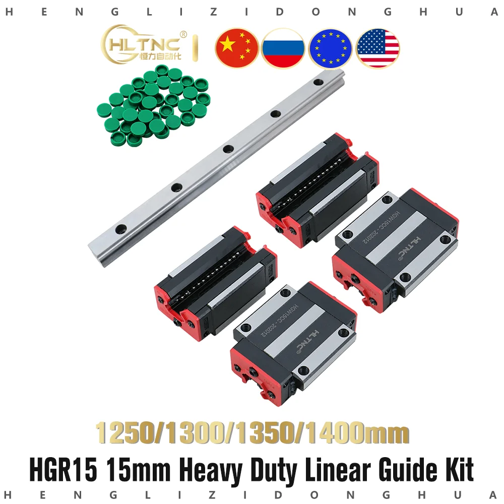 2 шт. 15 мм HGR15 линейный направляющий рельс 1250 мм 1300 мм 1350 мм 1400 мм + 4 шт. линейный блок каретки HGH15CA flang HGW15CC HGH15 CNC части