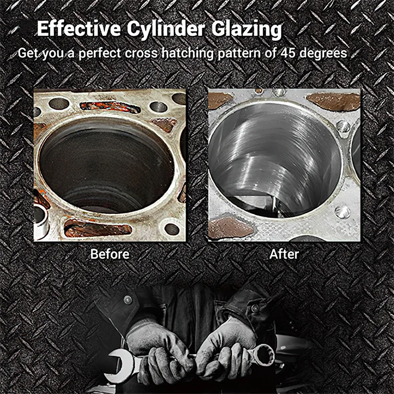 55-177 мм Характеристика:Главный приводной вал гибкийПростое использование и самоцентрированиеРегулируемое давление хонинга для того чтобы одеть специфическое применениеПодходит для использования с электрической или воздушной дрельюУдобное хранениеХарактеристики:Размеры: от 2 до 7 дюймов Диапазон диаметра (51 - 177 мм)Настройка: 2-4 дюйма И 4-7 дюймов.Камни: 3 - 220 ЗернистостьДлина камня: 7,62 см (3 дюйма)Набор товаров:1 * Инструменты для ремонта автомобиля