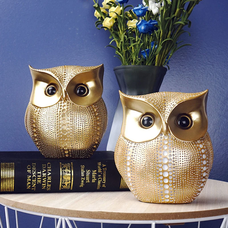 Скандинавские креативные фигурки Совы из смолы, для гостиной, офиса, рабочего стола, орнамент, статуя Золотой совы, скульптура, ремесла, украшение для дома