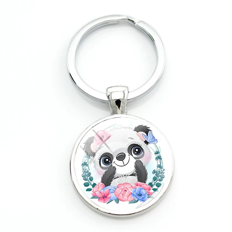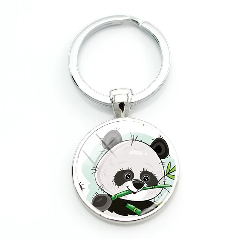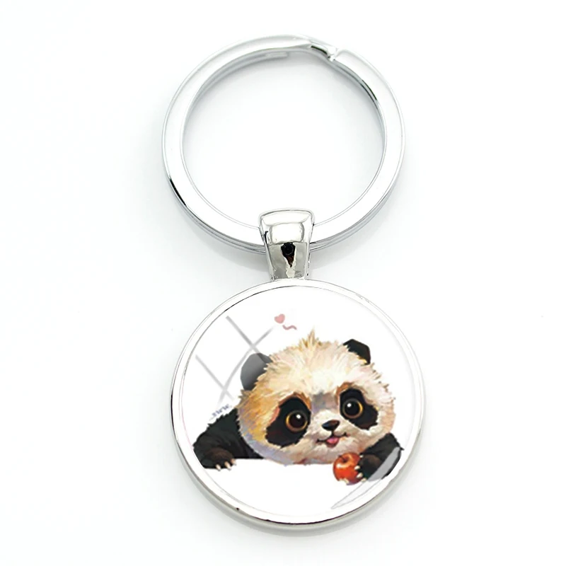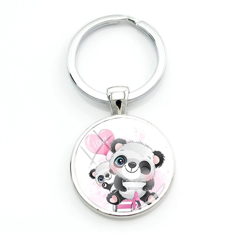 Брелки для ключей TAFREE Q Version Panda с гирляндой, Симпатичные маленькие брелки с рисунком панды, круглые стеклянные металлические брелоки