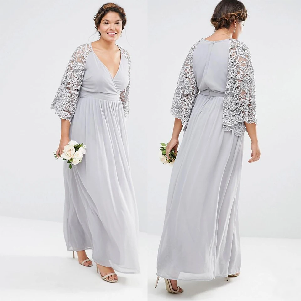 С v-образным вырезом с рукавом три четверти Новое Кружевное пол-Длина Формальные Вечерние платья шифоновое платье трапециевидной формы на заказ; Большие размеры для выпускного вечера вечерние платья