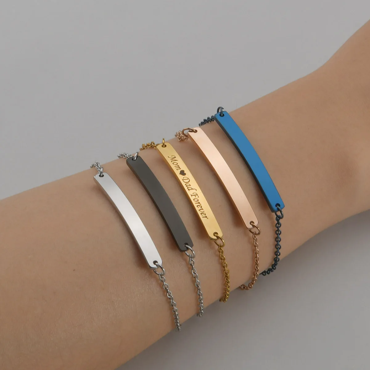 Shape/PatternAdjustable Custom Engraved Name Words ID Bar Bracelet
