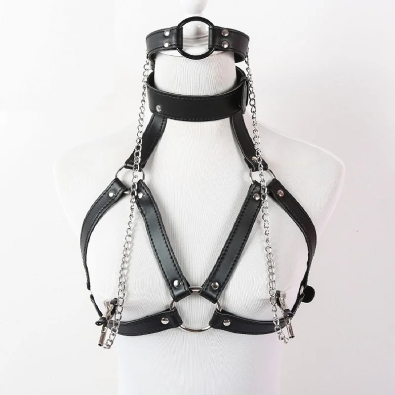 Ошейник для БДСМ, фетиш, кожаный, портупея для тела, ремни для взро...