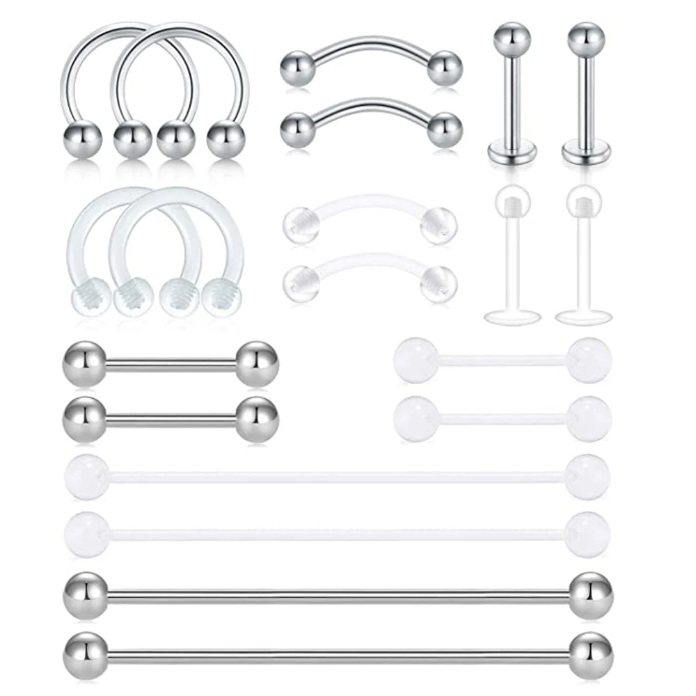 Ясно из нержавеющей стали фиксатор Нержавеющаясталь гибкое акриловое спирали кольца для губ, носа, гвоздик для брови для трагуса септума Подкова Кольцо