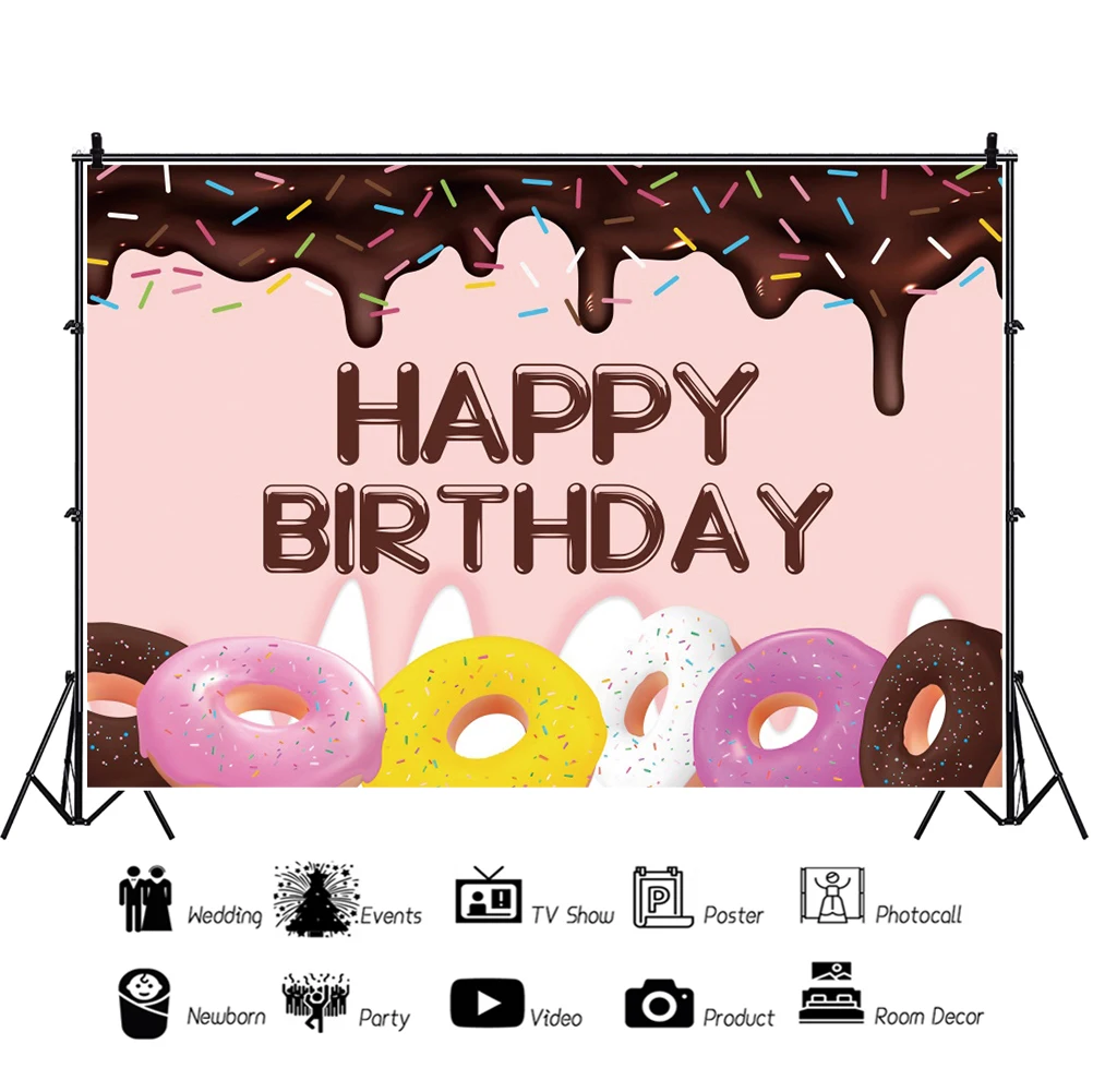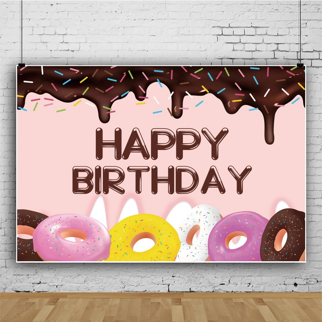 Laeacco милые шоколадные пончики десерт день рождения декорация детский день рождения баннер постер фотография Фон Фотостудия