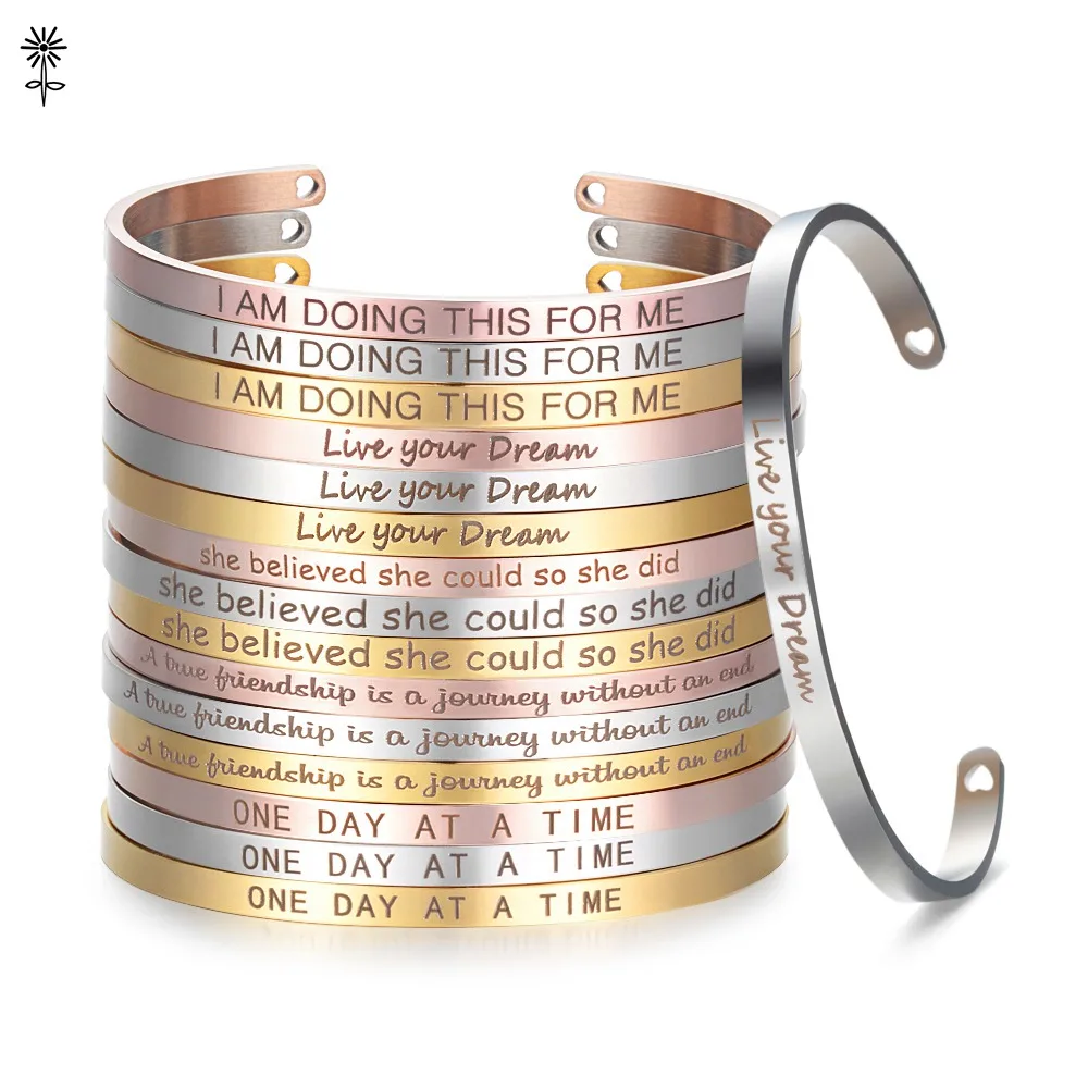 Ширина 4 мм, 3 цвета, лазерная лампа, вдохновляющие браслеты с цитатами, мантра, браслеты, подарки на годовщину для женщин