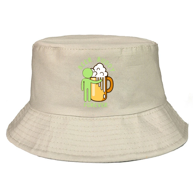 Панама МужскаяЖенская хлопковая с забавным принтом, двухсторонняя шапка-ведро с забавным пивом, однотонная цветная, лето