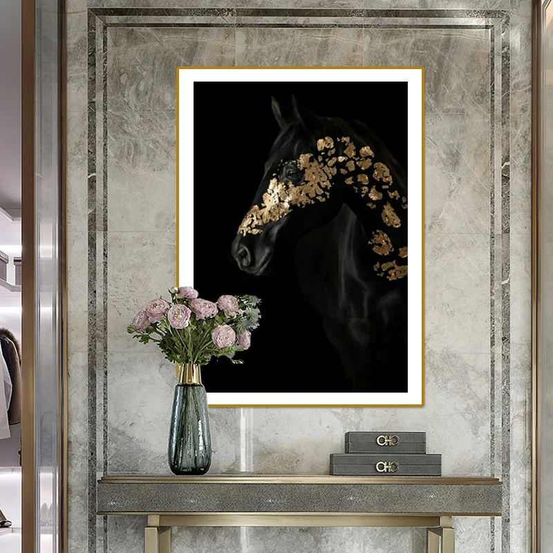 Светильник Роскошные животные черно-золотые живопись на холсте с изображением лошади креативные постеры, печатные картины для гостиной, украшения дома