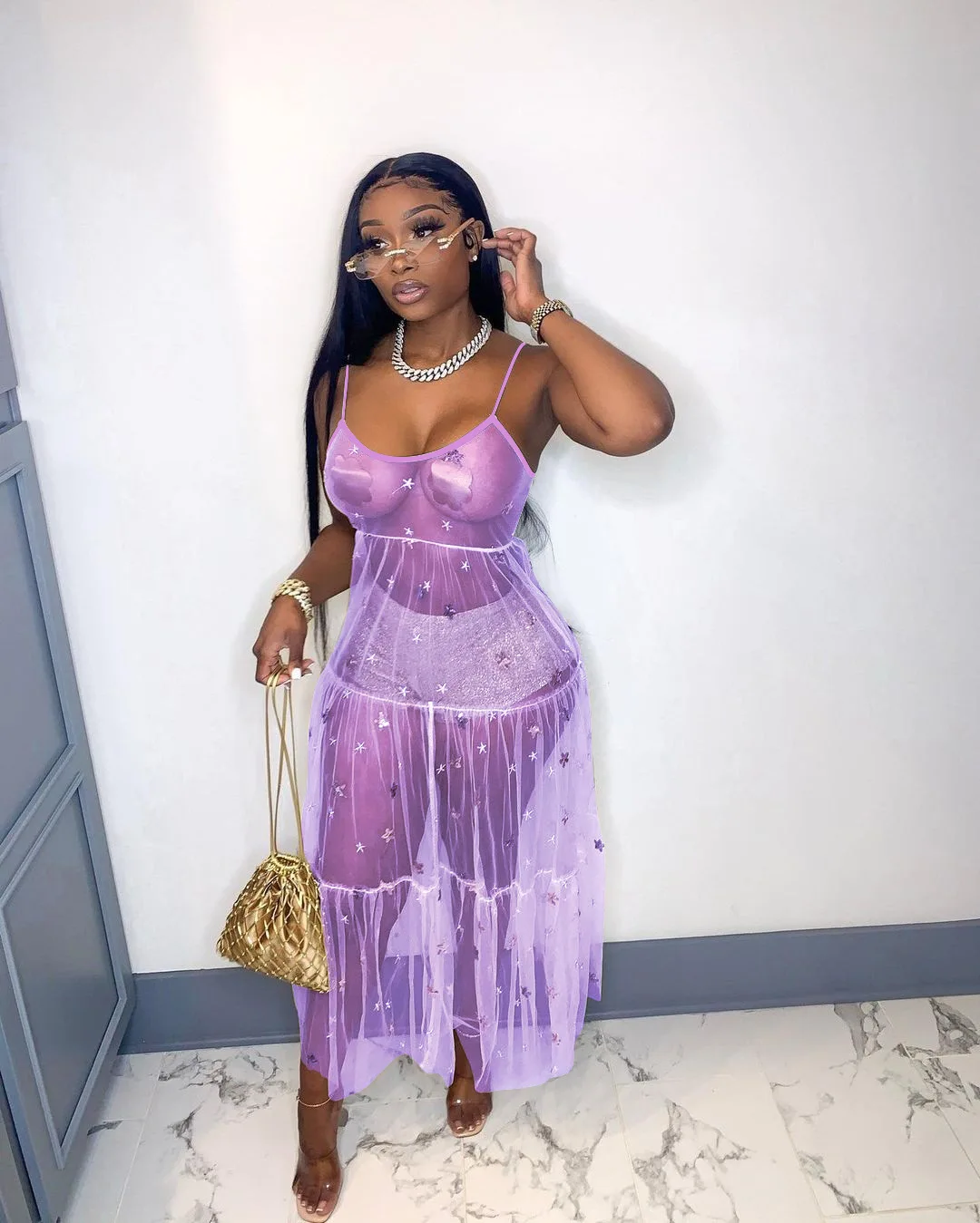 BKLD S-2XL, летняя одежда для женщин, 2021, новая мода, блестящее, расшитое блестками, сексуальное, звездное, лоскутное, Сетчатое, прозрачное, на тонких бретелях, длинное платье