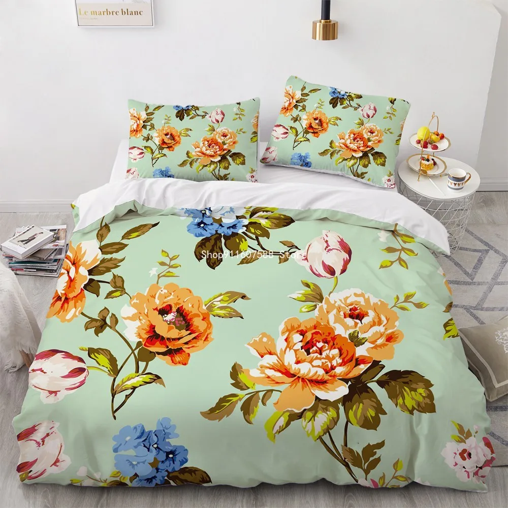 Комплект постельного белья в скандинавском стиле, комплект зеленого цвета с пододеяльником и наволочками, с 3D рисунком растений, домашний текстиль, весна