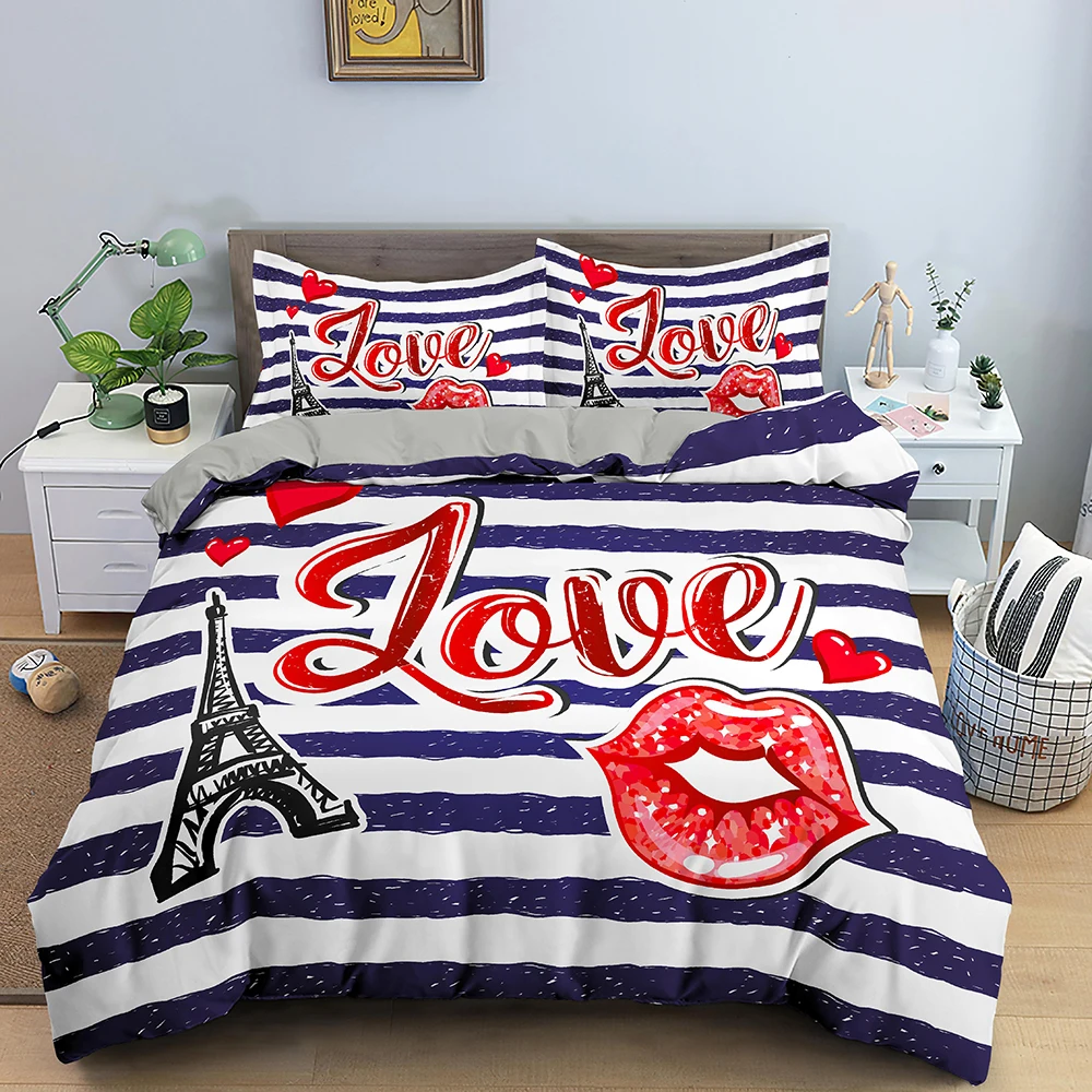Комплект постельного белья для пар, пододеяльник с розовым сердцем, покрывало из микрофибры, Королевский размер, пододеяльник