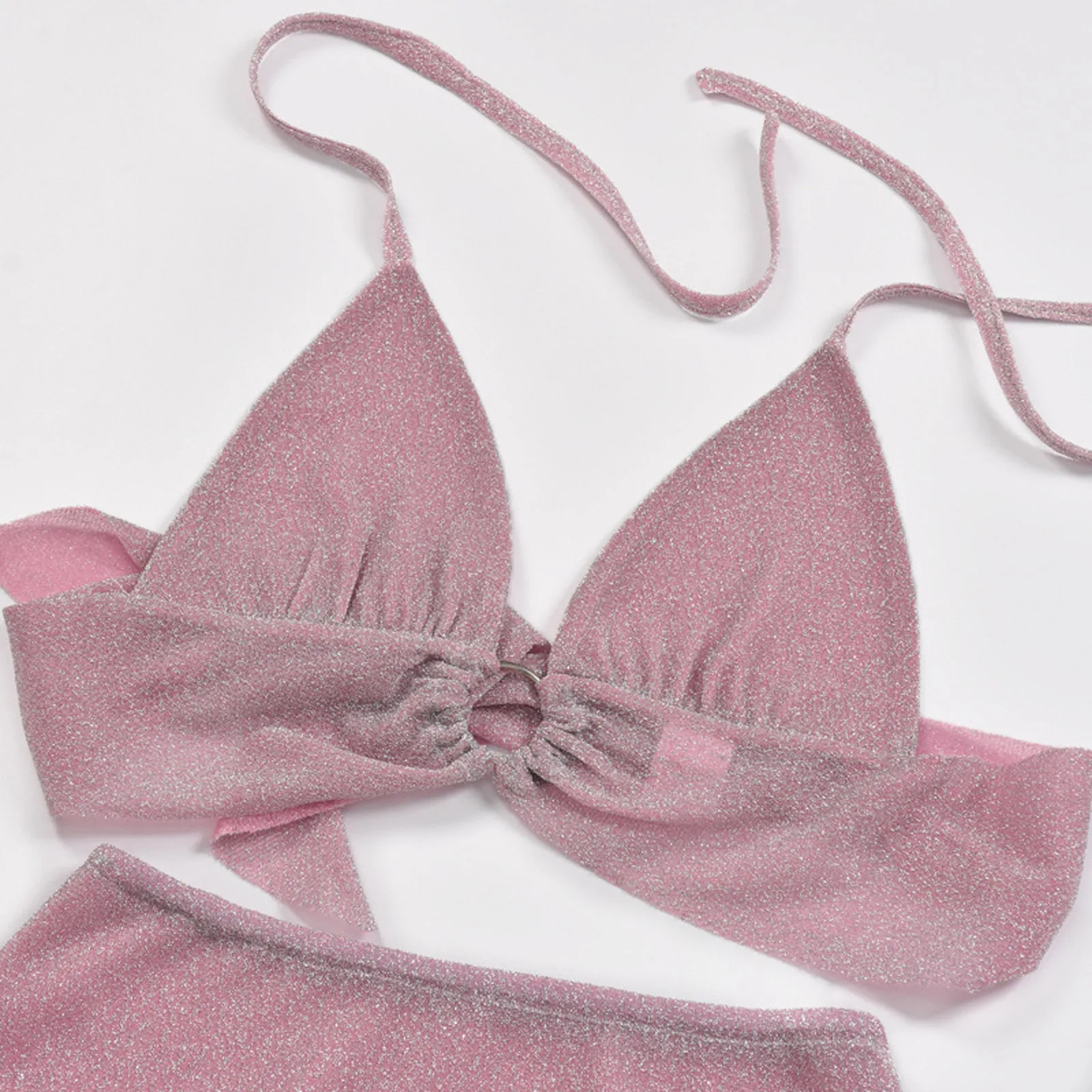 Короткий костюм, модный сексуальный Блестящий шелковый костюм с открытой спиной И пупком на шнуровке, прозрачный Комплект из двух предметов, Женский Топ И Комплект