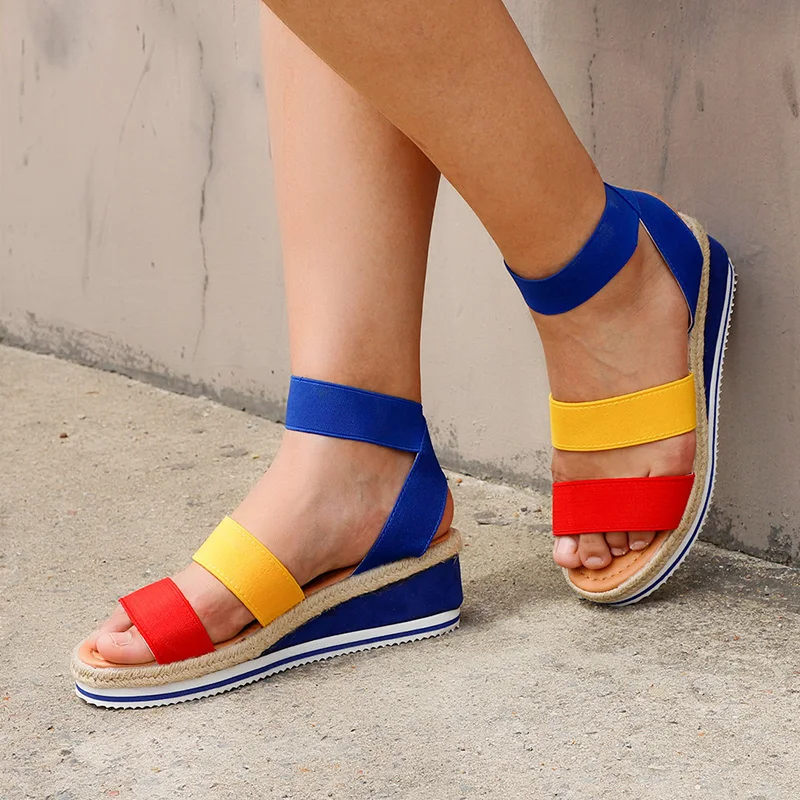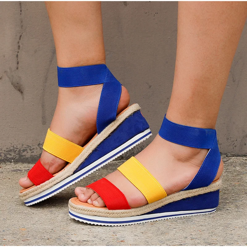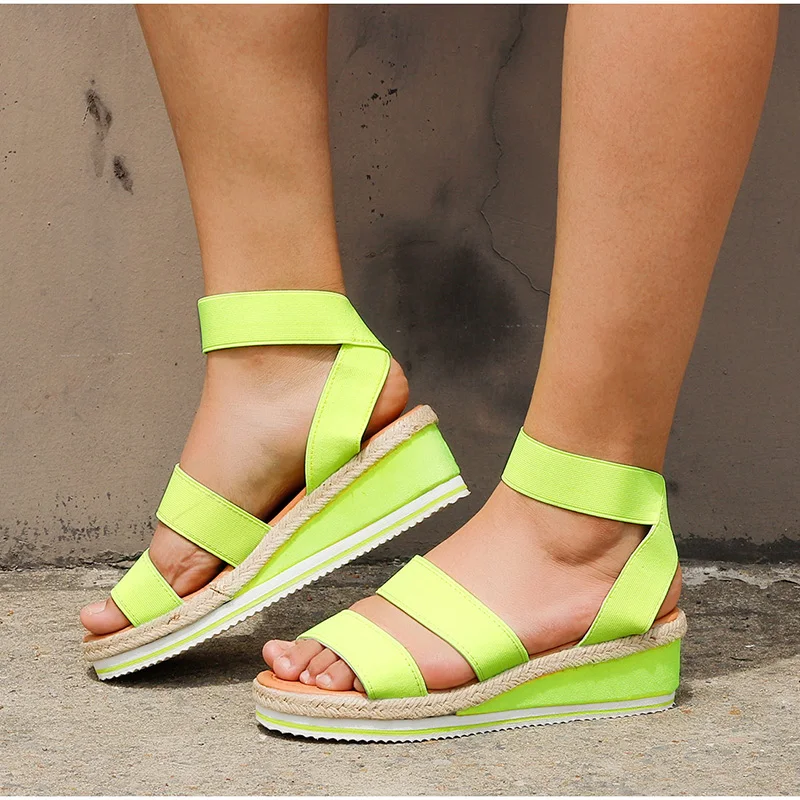 Сандалии женские на танкетке, босоножки конфетных цветов, без засте...