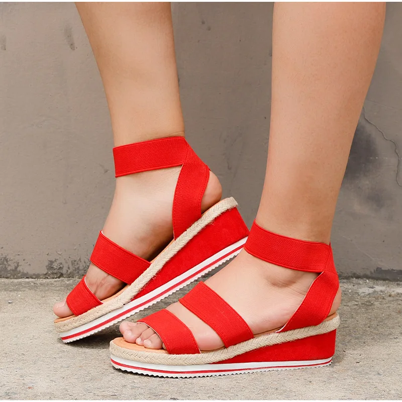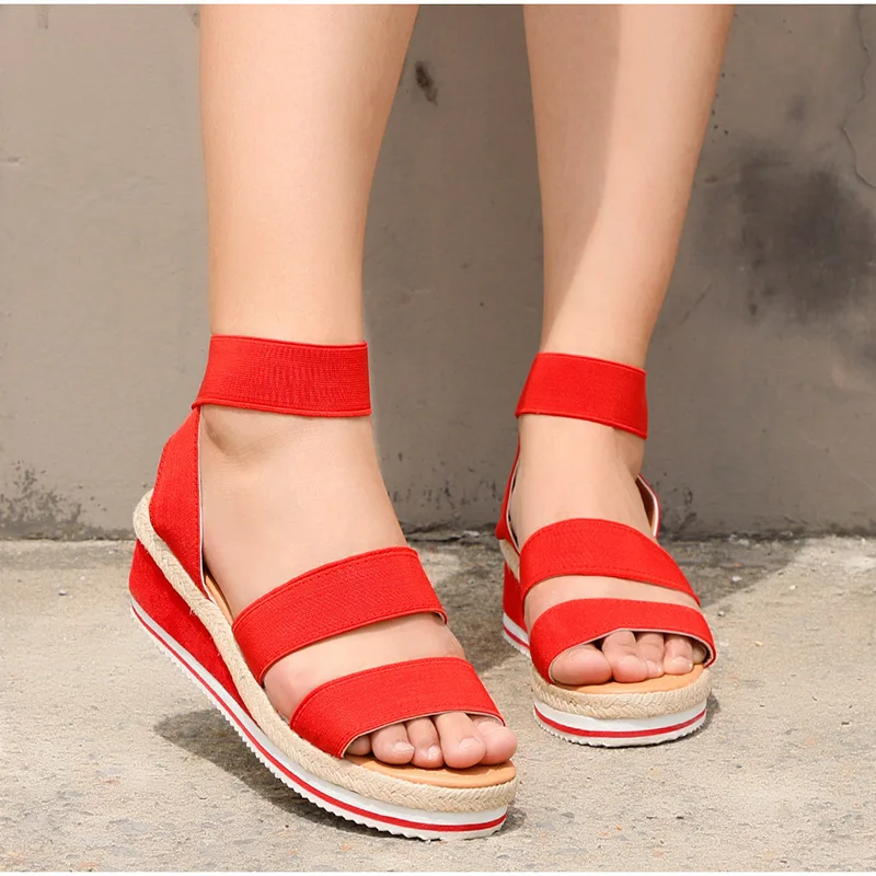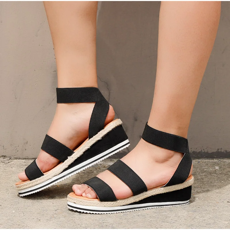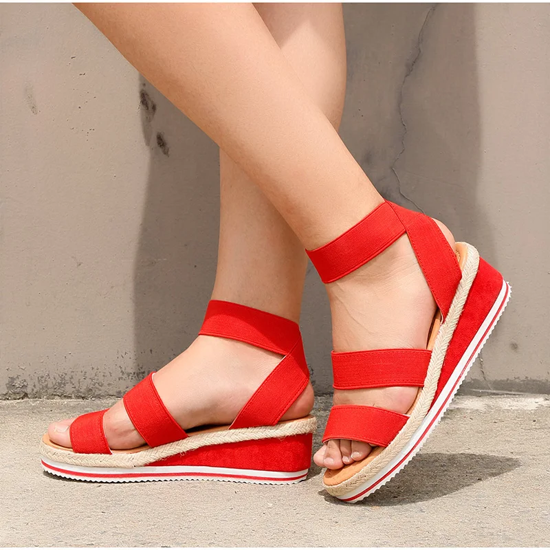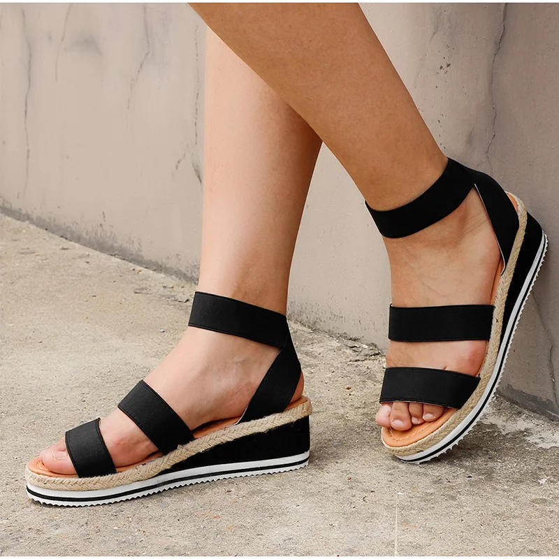 Женские сандалии; Модель 2020 года; Женские сандалии на платформе без застежки; Женская обувь; Летняя модная женская обувь на танкетке; Женские удобные туфли-лодочки