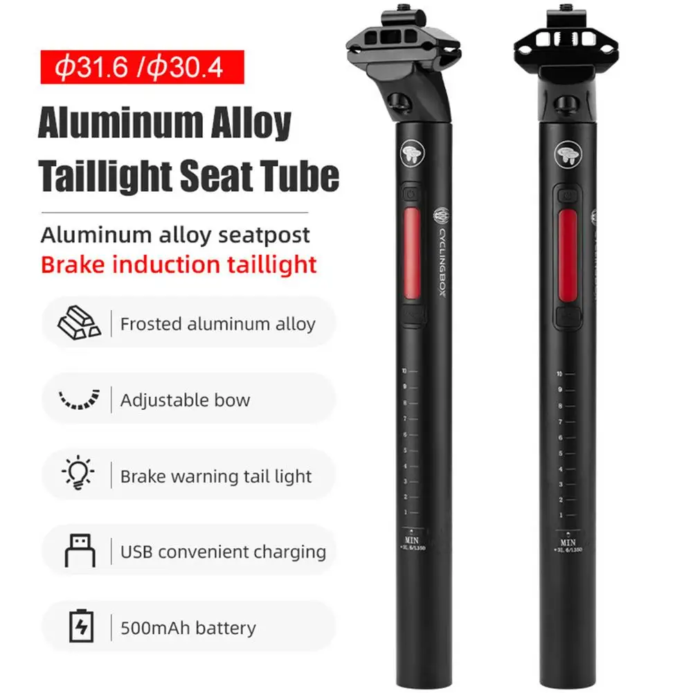 Подседельный штырь для велосипеда с USB-зарядкой, из алюминиевого сплава, двойная дорожка для сиденья велосипеда с регулируемым зажимом, подседельная труба