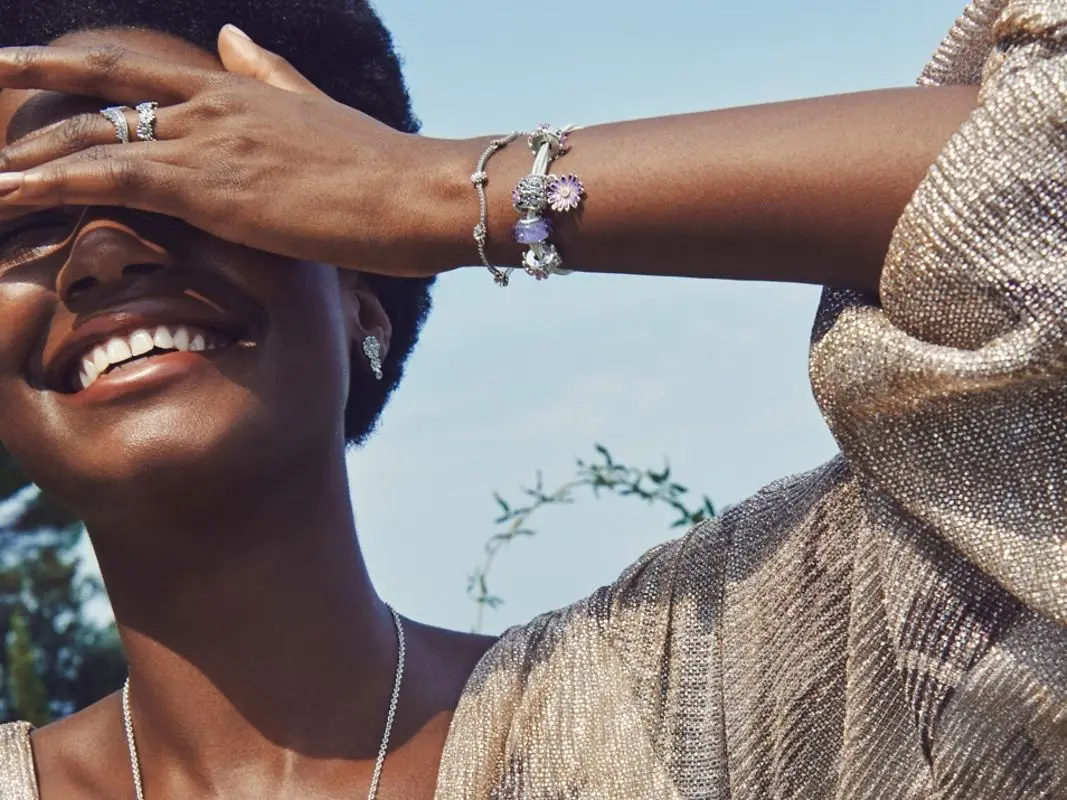 Женский браслет из серебра 2022 пробы с розовыми маргаритками